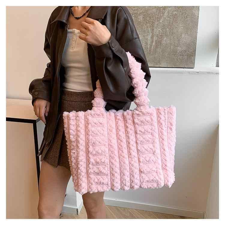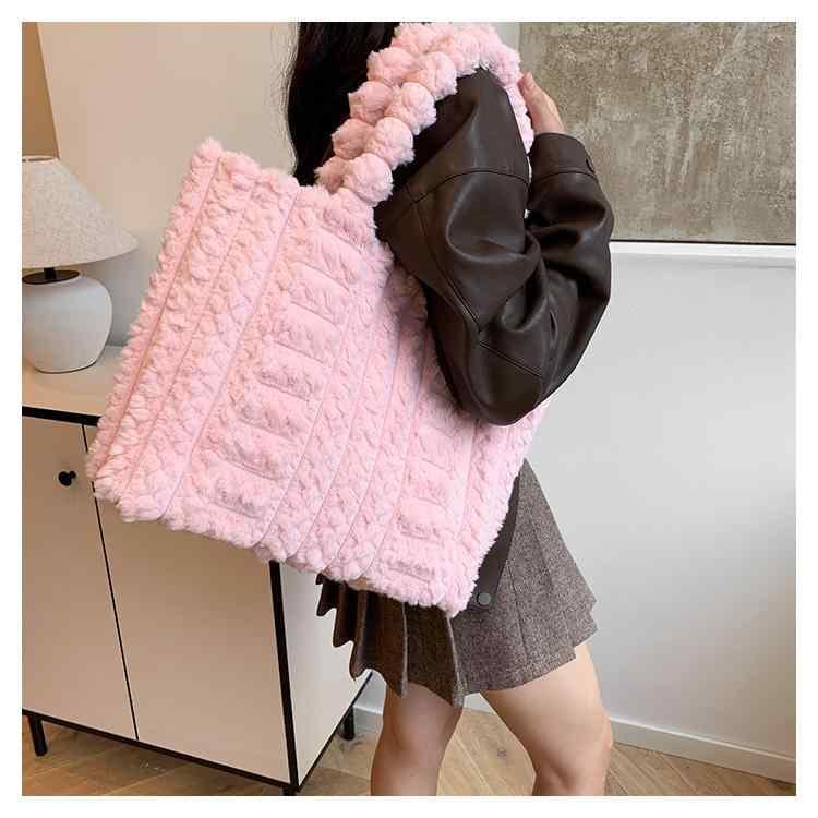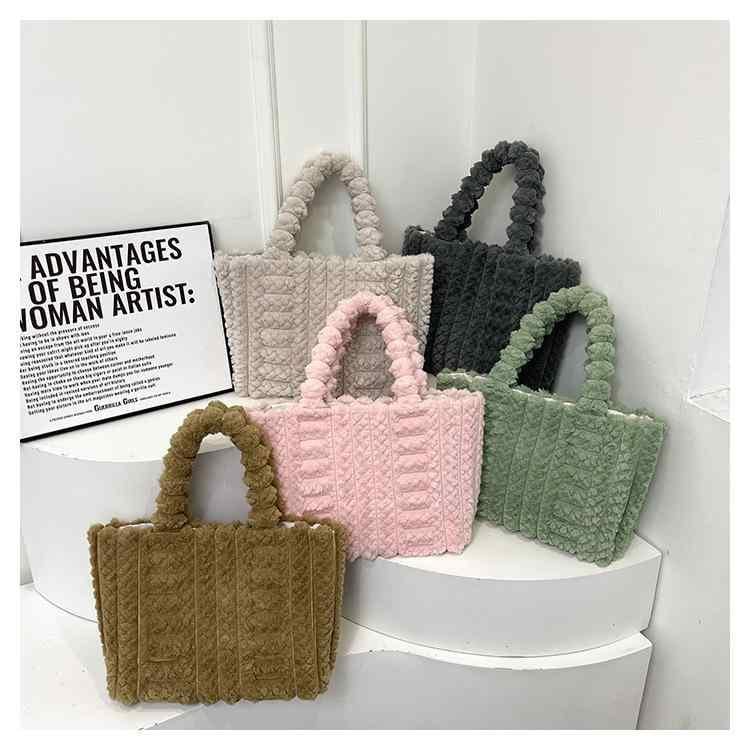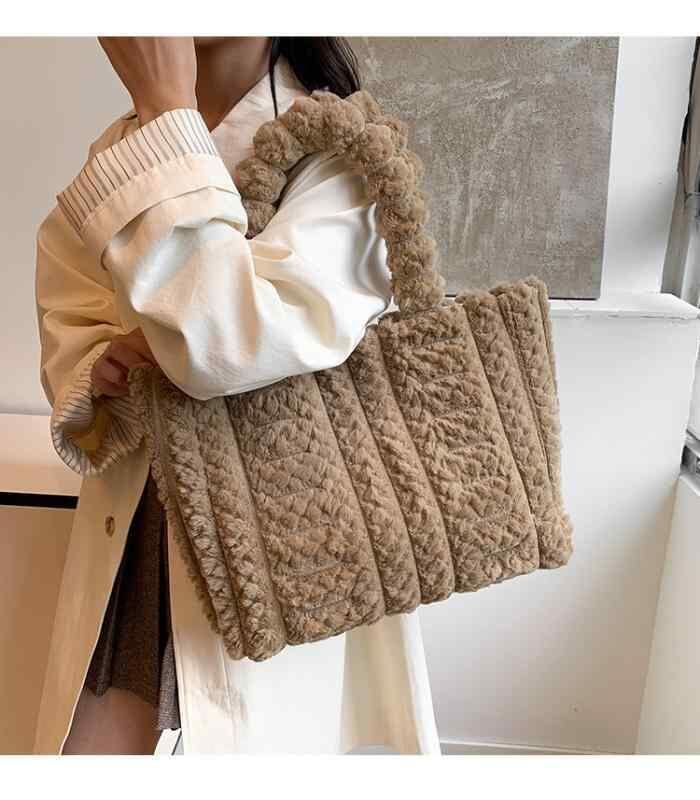 バッグ レディース 秋冬 もこもこ 大容量 トートバッグ ショルダーバッグ ハンドバッグ 普段使い 通勤 デイリーユース シンプル カジュアル おしゃれ 柔らかい 横型 スクエア ファスナー開閉