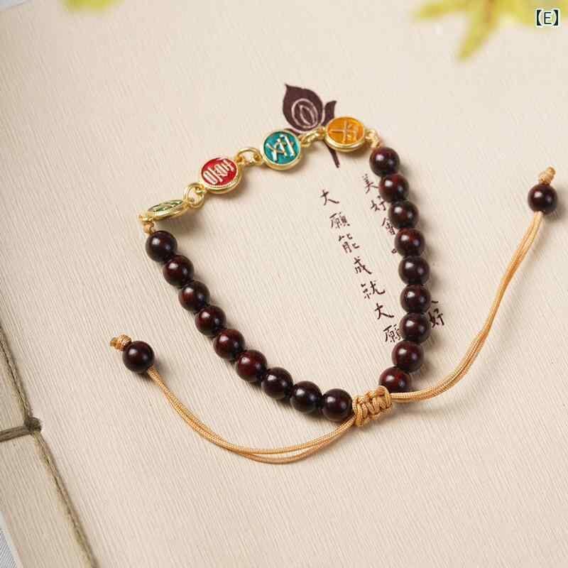 数珠 男女兼用 小葉紫檀 棗形ビーズ DIY 貔貅 ラッキーアイテム 招財 お守り 民族風 エスニック ハンドメイド アクセサリー ブレスレット