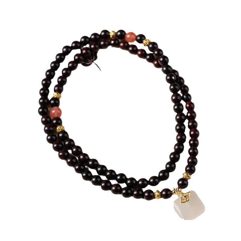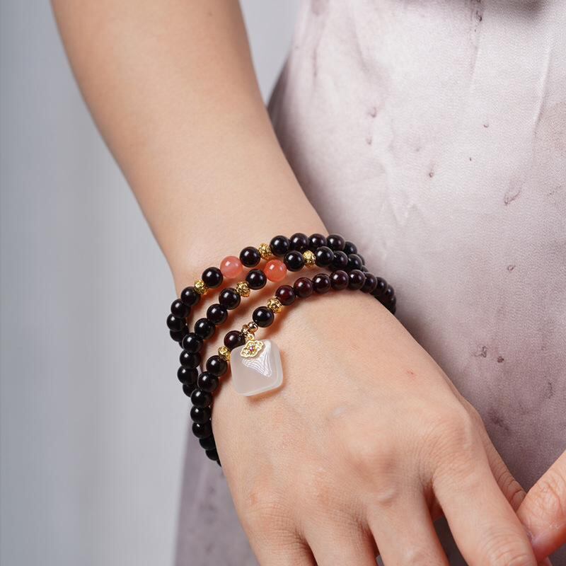 数珠ブレスレット 男女兼用 小葉紫檀 6mm珠 二重巻き 白瑜デザイン DIY 手作り エスニック アクセサリー 装飾品 腕輪