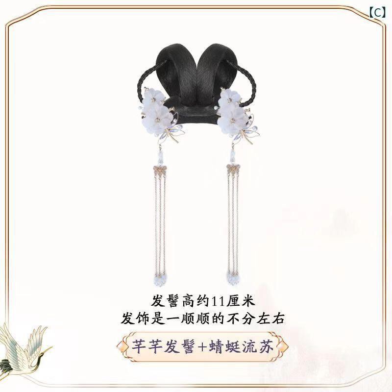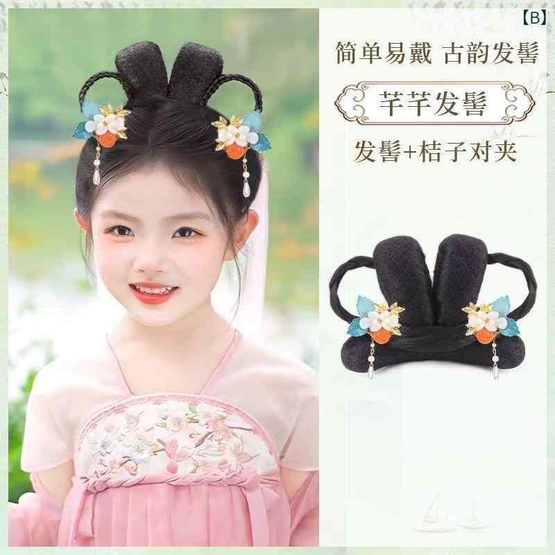 つけ毛 女の子 中国風 中国伝統衣装風 古風 ヘアピース 子供用 お団子 シニヨン 三つ編み まとめ髪 髪飾り 発表会 七五三 イベント