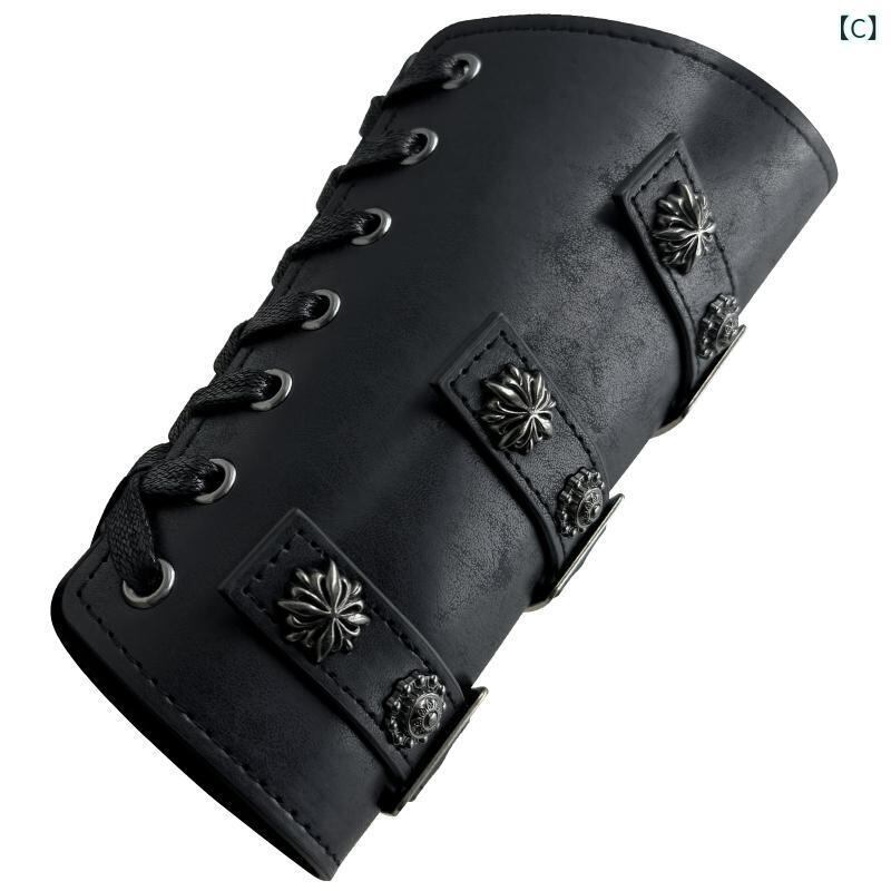 腕当て 騎士 アームガード ガントレット 中世 欧州 復古 ヴィンテージ風 コスプレ 舞台 衣装 小道具 イベント 演劇 仮装 ハロウィン フェイクレザー 重厚感 ダークブラウン アンティークブロンズ ブラック 片腕用 | cybercart