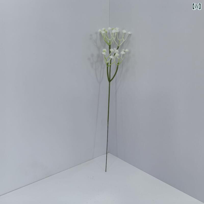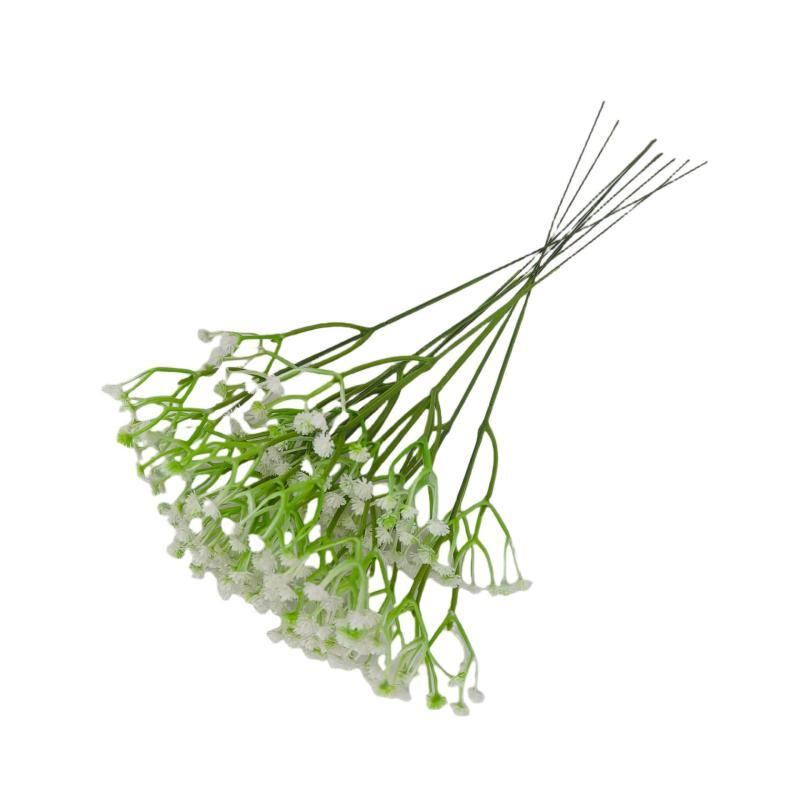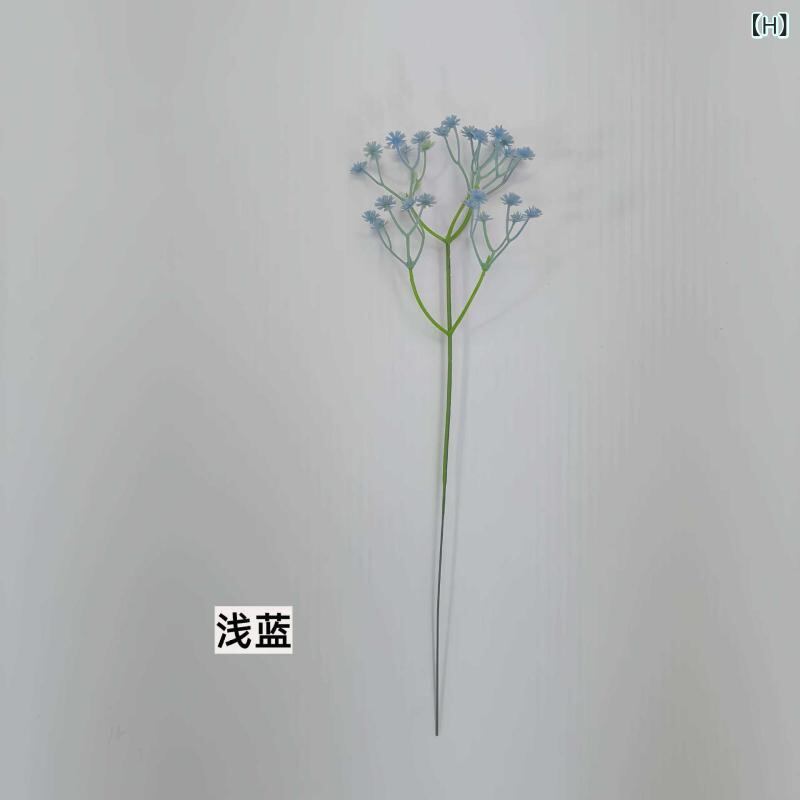 ["・素材: プラスチック","・加工: 射出成形","・カラー展開: グリーンホワイト、ピンク、パープル、ダークブルー、オフホワイト、イエロー、ライトブルー、紅蓮","・種類: カスミソウ","・高さ: 30cm","・用途: 結婚式、屋外、写真撮影用小道具、室内装飾"]