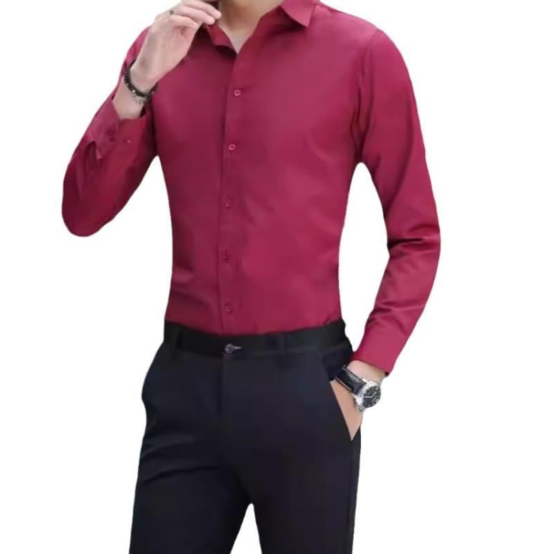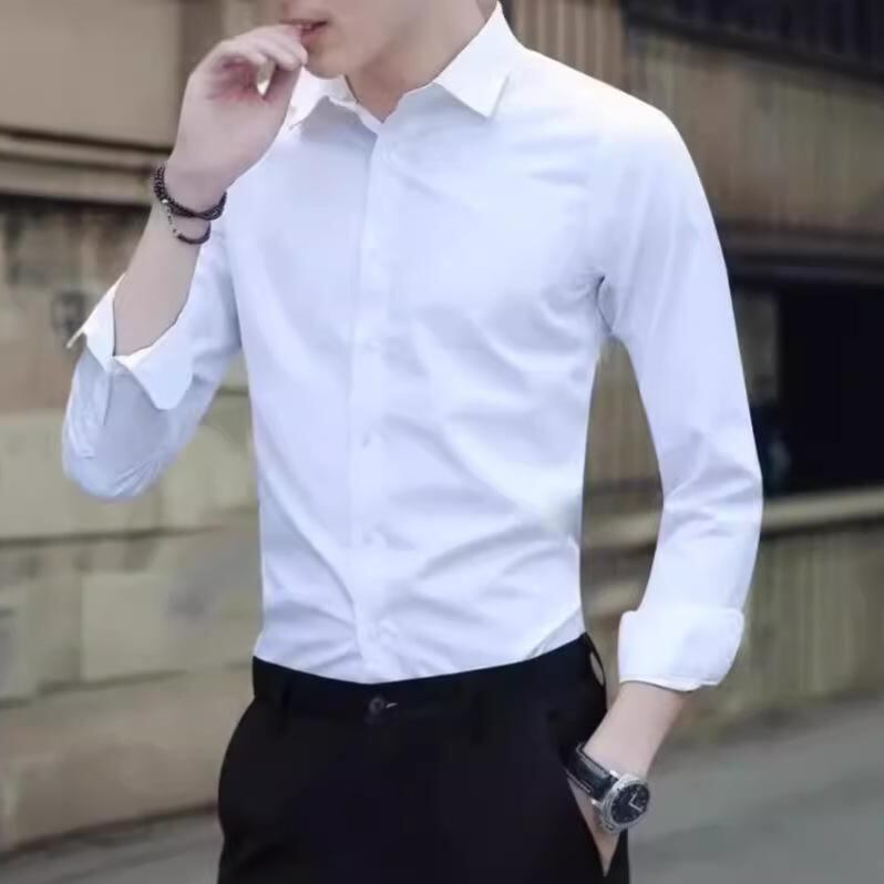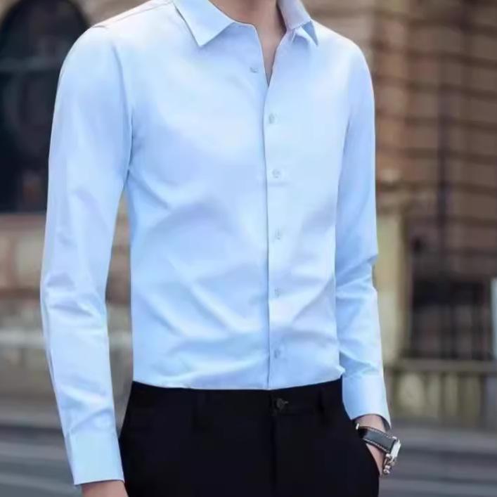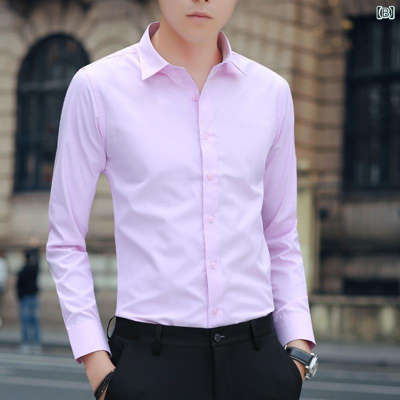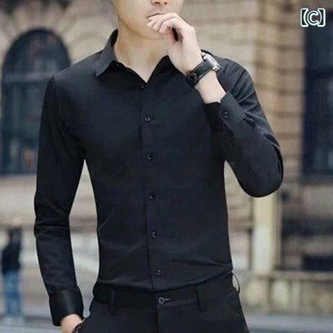 シャツ メンズ 長袖 ワイシャツ 無地 スリムフィット 細身 ビジネス カジュアル オフィス フォーマル ウォッシャブル イージーケア 混紡 スタンドカラー トレンド