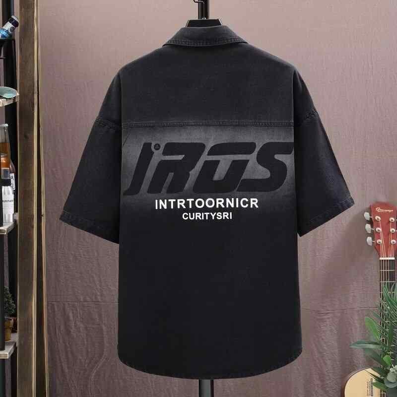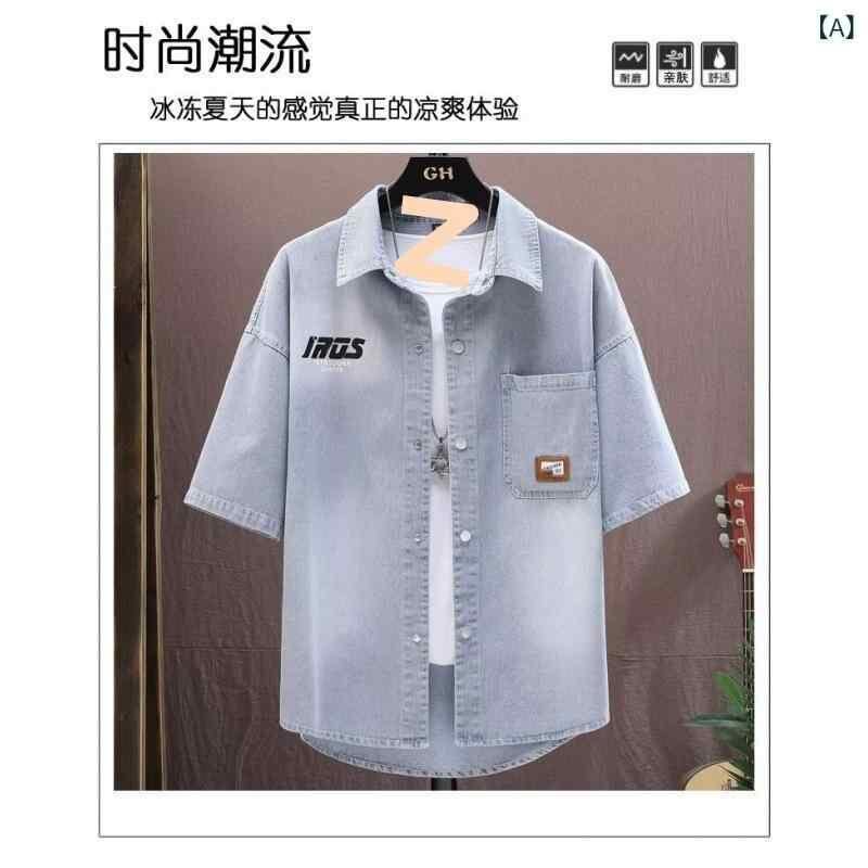 シャツ メンズ 学生 デニム 半袖 ビッグシルエット ワークテイスト ストリート カジュアル トップス 夏 ブルー ブラック 襟付き 普段使い