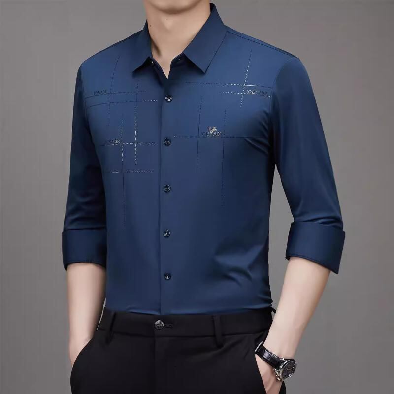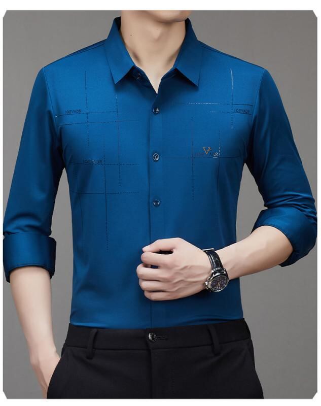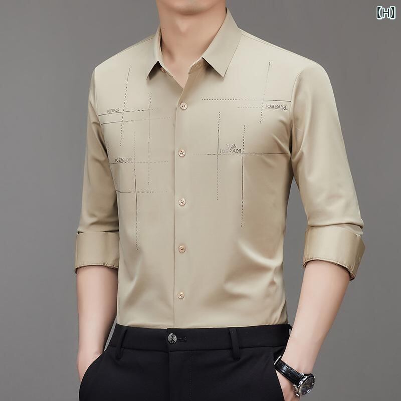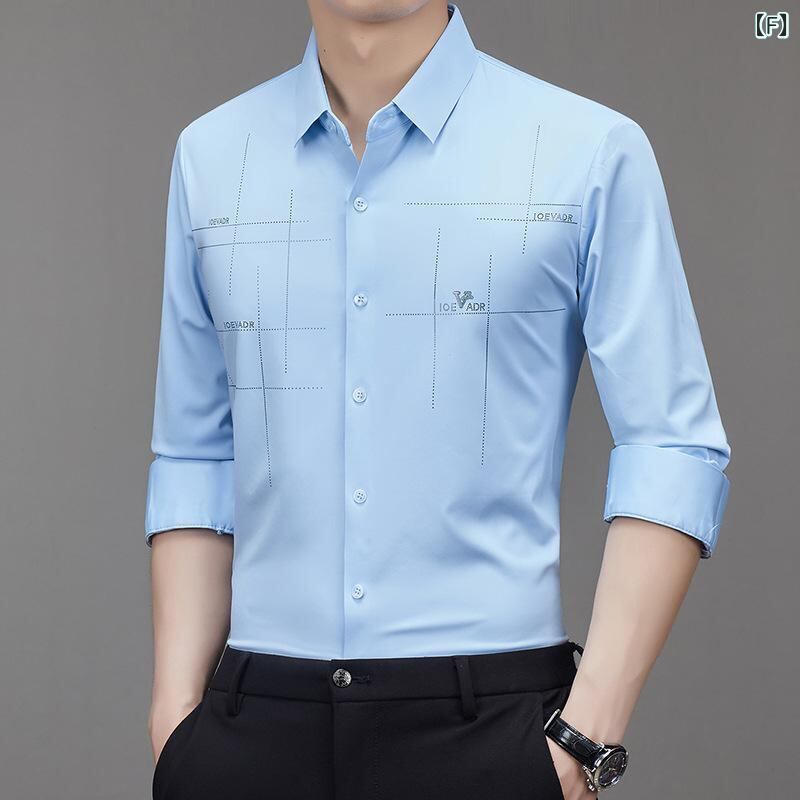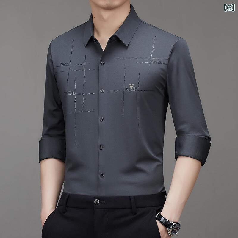 シャツ メンズ 男性用 プリント 長袖 シームレス ビジネス カジュアル 通勤 普段使い スリムフィット 細身 襟付き ポリエステル混紡 黒 白