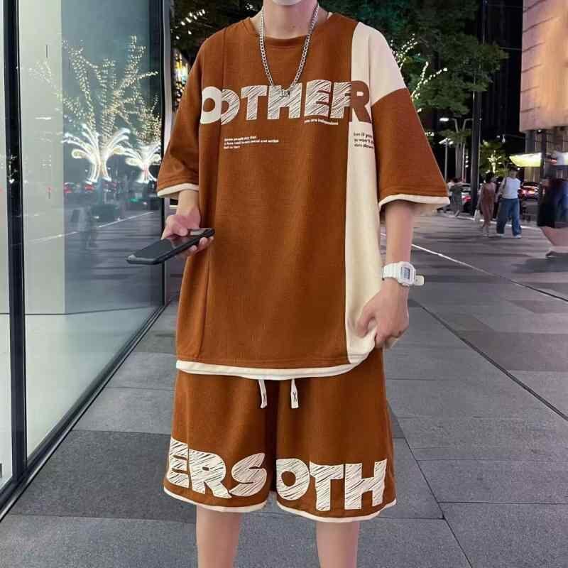 セットアップ メンズ 男性 半袖 トップス Tシャツ ショートパンツ 上下セット かっこいい スタイリッシュ 大きいサイズ ビッグシルエット ワッフル生地 夏 サマー カジュアル スポーツ 部屋着 普段使い ストリート レジャー