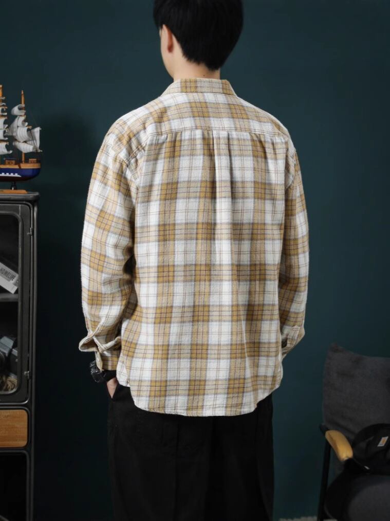 シャツ メンズ 長袖 チェック柄 カジュアル ゆったり ルーズフィット 普段使い レジャー 通気性 ポリエステル混紡 シワになりにくい 春物トップス カーキ ブルー