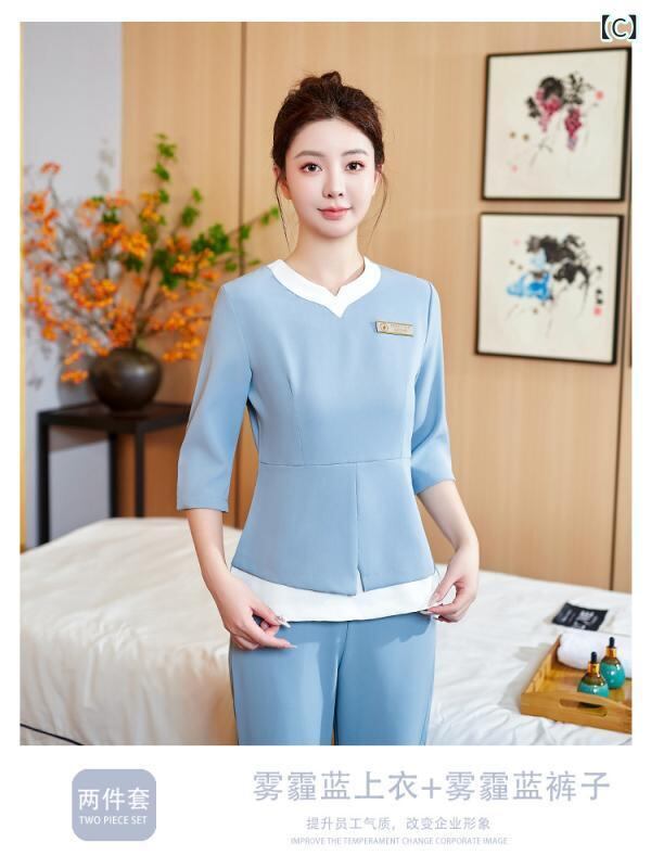 ユニフォーム レディース 女性用 パンツスーツ エステサロン スパ ネイルサロン フットケア マッサージ 美容 施術師 セラピスト ワークウェア 制服 ポリエステル ストレッチ 形態安定 セットアップ
