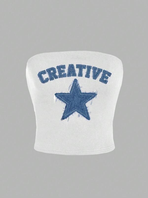 トップス レディース ノースリーブ へそ出し クロップド丈 星柄 プリント ホワイト 夏 カジュアル ストリート系 Y2K ファッション セクシー系 スタイル 韓国 伸縮性あり