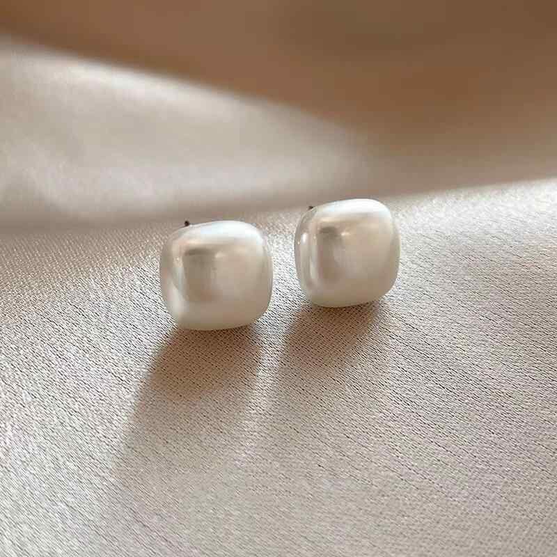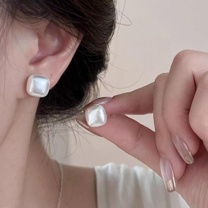ピアス レディース スクエア 貝パール 高級感 軽量感 上品 エレガント 華やか 存在感 幾何学模様 金属製 ハンドメイド