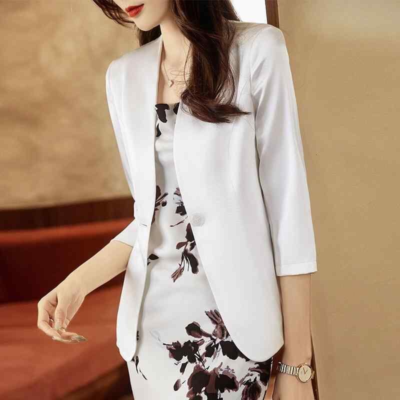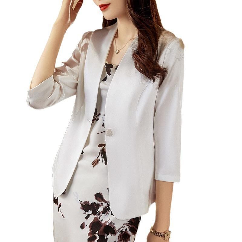 ジャケット 女性用 薄手 七分袖 無地 ホワイト ブラック ポリエステル エレガント カジュアル 通勤 ビジネス オフィス オフィスカジュアル 上品 きれいめ おしゃれ ファッション トレンド 大人 女性 レディース