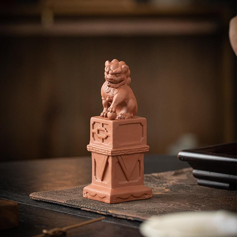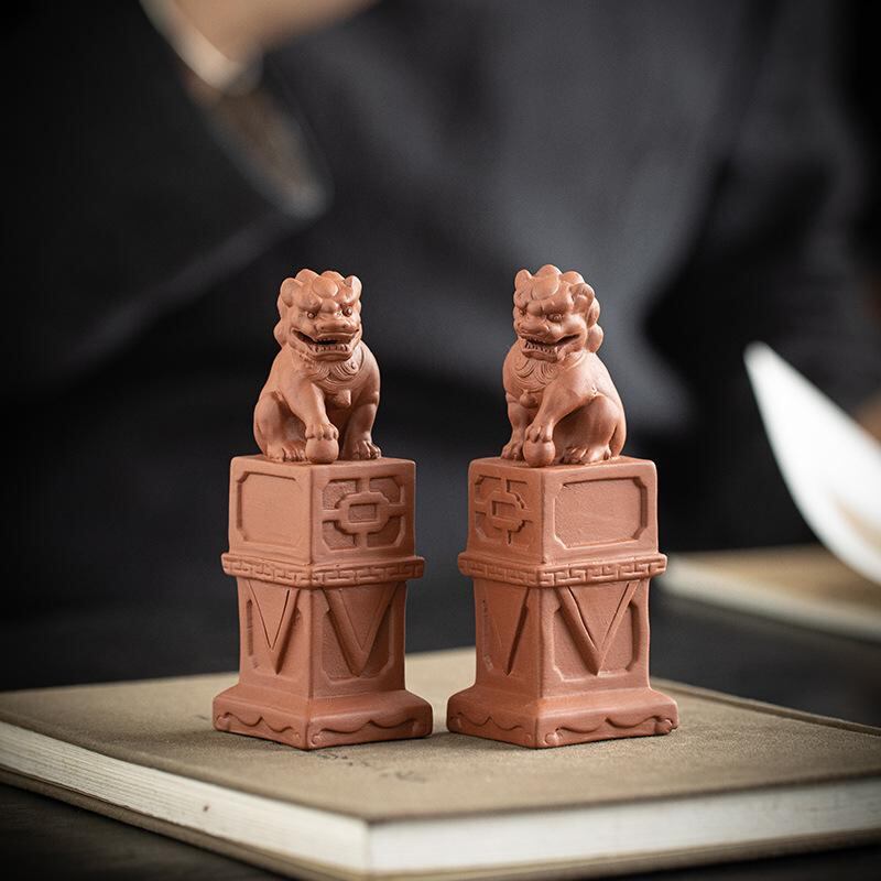 置物 紫砂 ミニ獅子 中国風 招福 開運 ラッキーアイテム 陶器 工芸品 リビング 玄関 オフィス デスク 卓上 インテリア 飾り棚 記念品 贈答品
