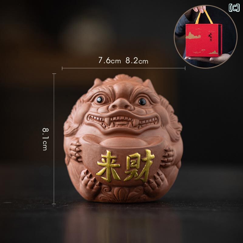 茶器飾り 貔貅 紫砂 置物 可養 茶玩 オブジェ 縁起物 吉祥物 ラッキーアイテム 金運招来 茶道具 茶卓 茶盤 装飾 デスク インテリア 書斎 リビング 飾り物 アクセント 陶器 焼き物