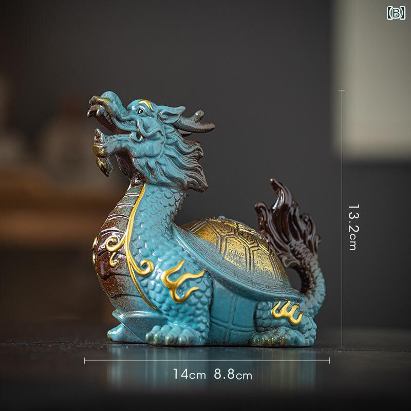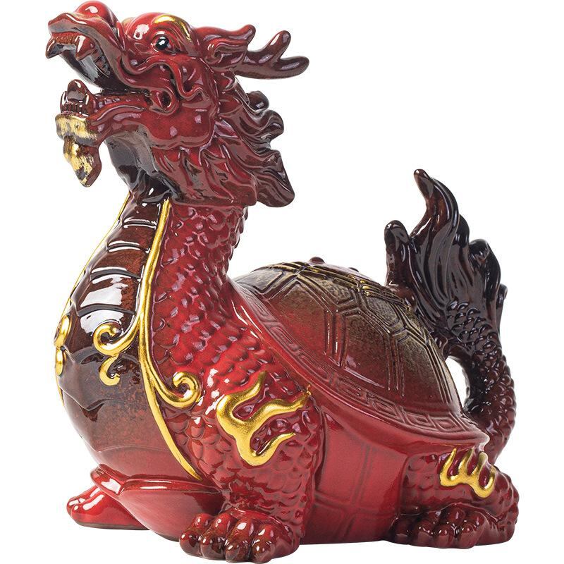 置物 龍亀 陶器 新中式スタイル 招財 金運 開運 吉祥 縁起物 神獣 リビング オフィス 卓上装飾 店舗 開業祝い 新築祝い 引越し祝い 結婚祝い 誕生日 ビジネスギフト 風水インテリア 赤 青
