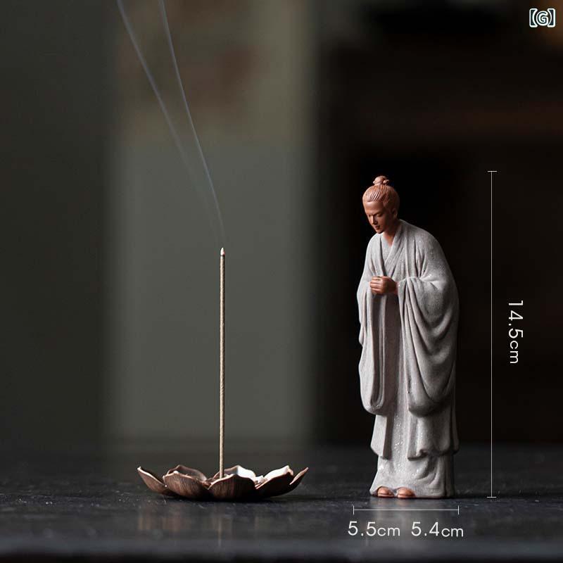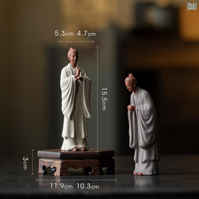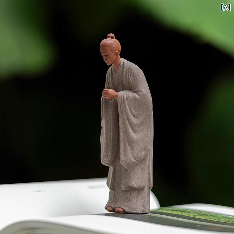 置物 中国風 小道士 フィギュア 禅意 紫砂 人物像 工芸品 新中華 モダン アジアンテイスト 茶室 リビング 書斎 卓上 飾り棚 インテリア 装飾品 陶器 焼き物 癒し おしゃれ ギフト プレゼント