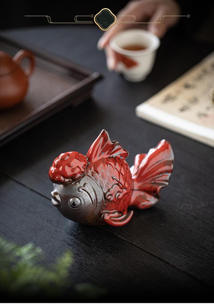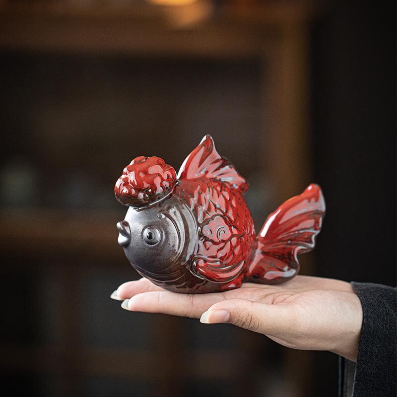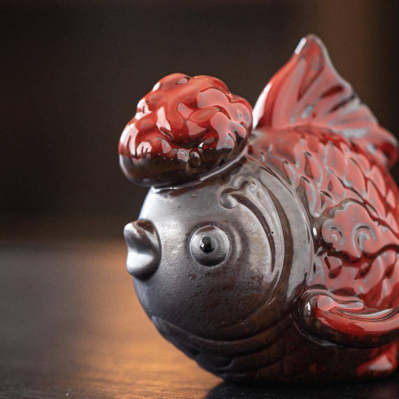 置物 錦鯉 陶器製 赤色 魚型 工芸品 金運 招福 開運 縁起物 高級感 和風 リビング 玄関 酒棚 床の間 和室 インテリア オブジェ デコレーション 飾り ギフト 新築祝い 開店祝い