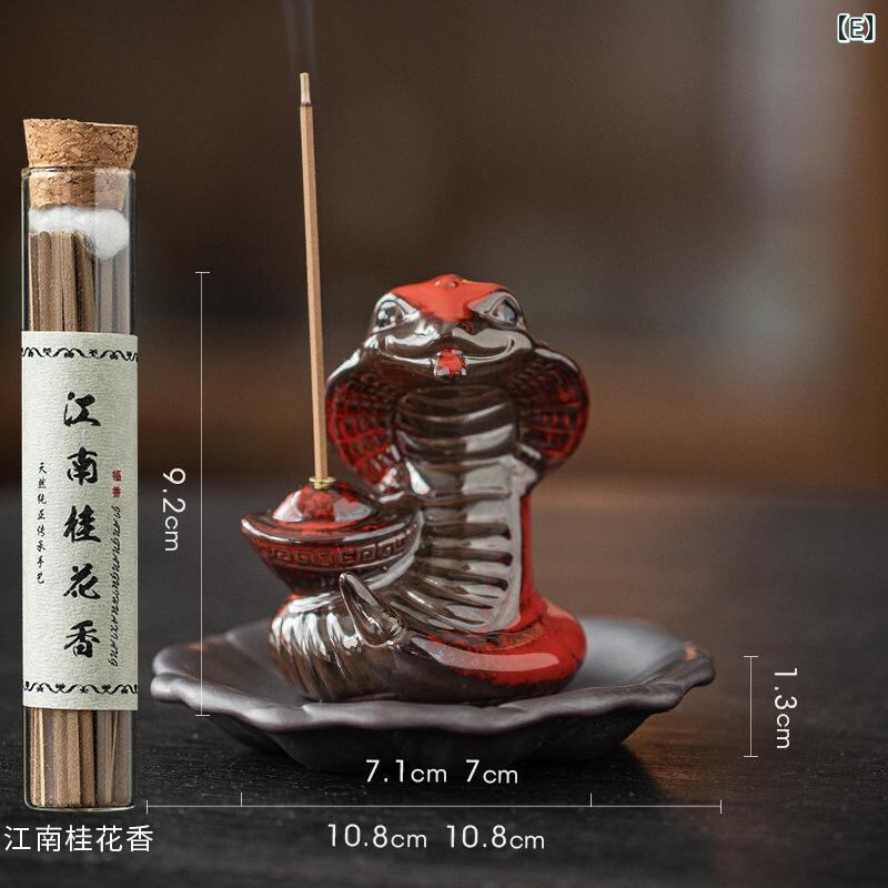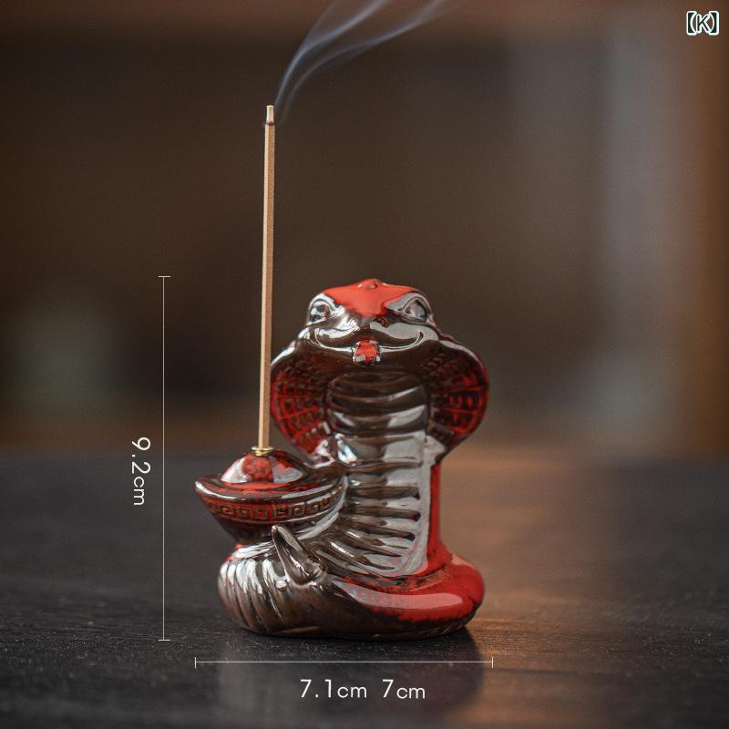お香立て 蛇 干支 陶器製 室内用 卓上置物 禅風 インテリアオブジェ 線香立て 茶道 瞑想 リラックス 和室書斎飾り レトロ アンティーク スネークデザイン 赤 青