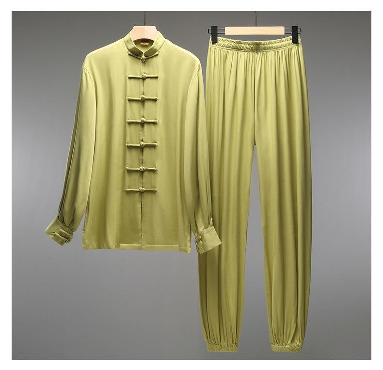 太極拳ウェア メンズ 男性用 中国風 新中式 唐装 セットアップ 上下セット 太極服 武術服 練習着 稽古着 運動着 スポーツウェア 普段着 部屋着 中高年向け 綿麻 リネン サンドウォッシュコットン ゆったり 吸湿速乾 快適