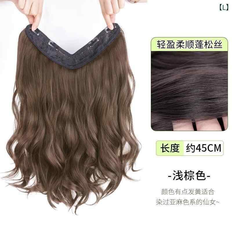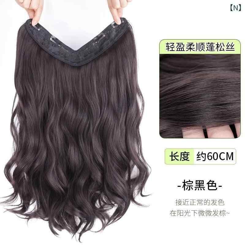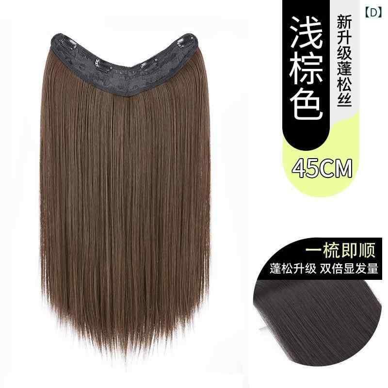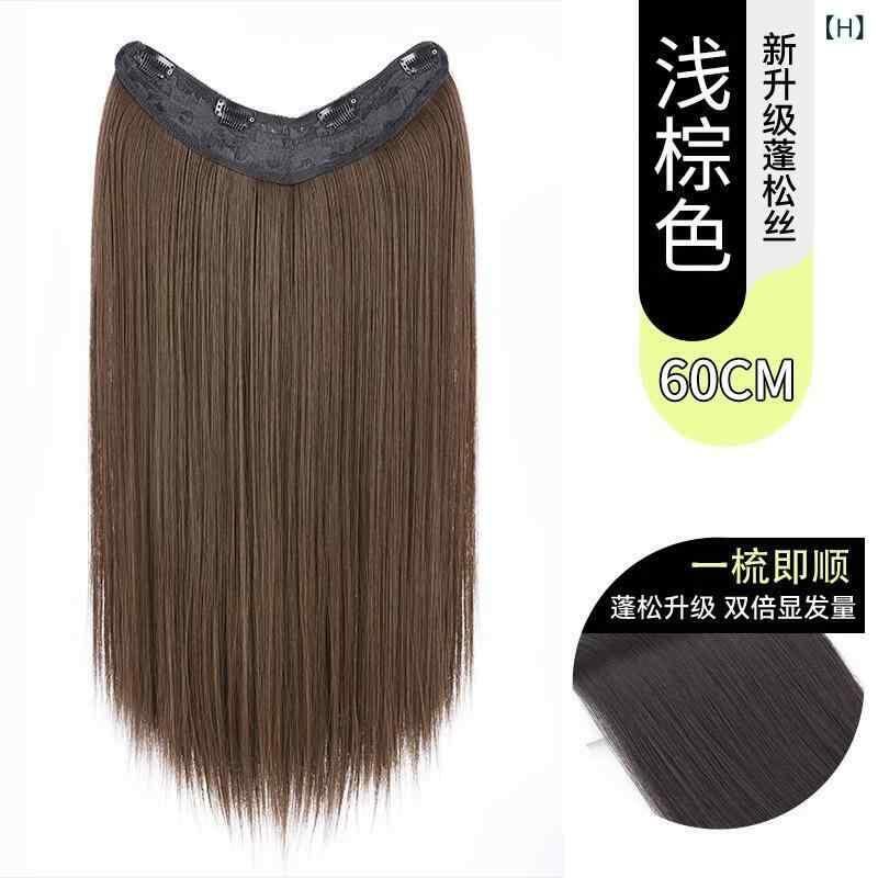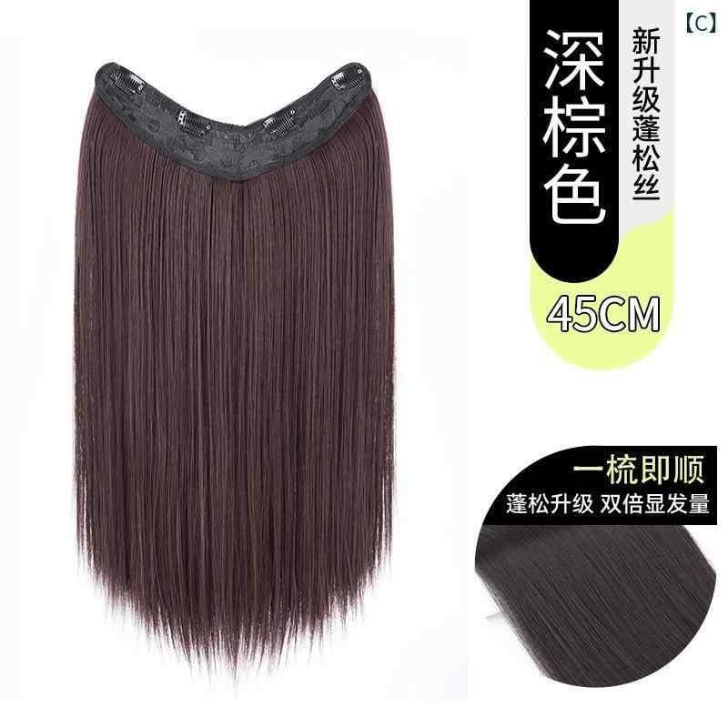 付け毛 レディース ロングストレート エクステ ワンタッチ V字型内巻き ふんわり増毛 シームレス 自然 クリップ式 耐熱ファイバー ナチュラルブラック ブラウン系