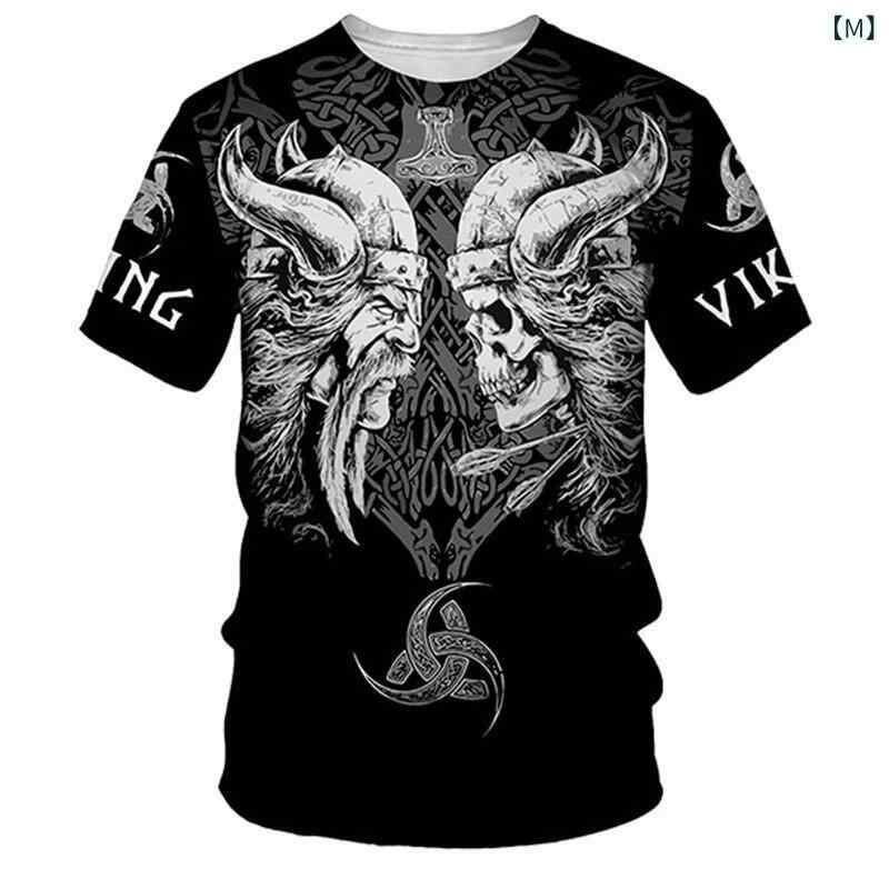 Tシャツ メンズ 半袖 夏 ヴァイキング神話 3Dデジタルプリント ストリートカジュアル ゆったり 吸汗速乾 薄手 ポリエステル 丸首 通気性