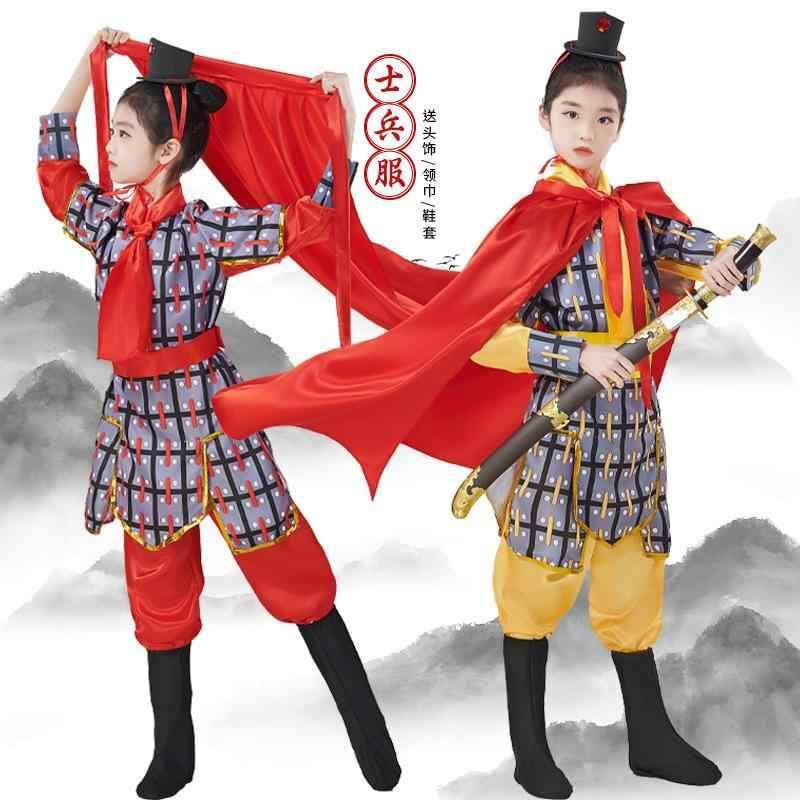 子供用 コスチューム キッズ 男の子 女の子 将軍 兵士 鎧 甲冑風 中国歴史 舞台衣装 演劇 発表会 イベント ハロウィン コスプレ ラビット混素材 赤 黄