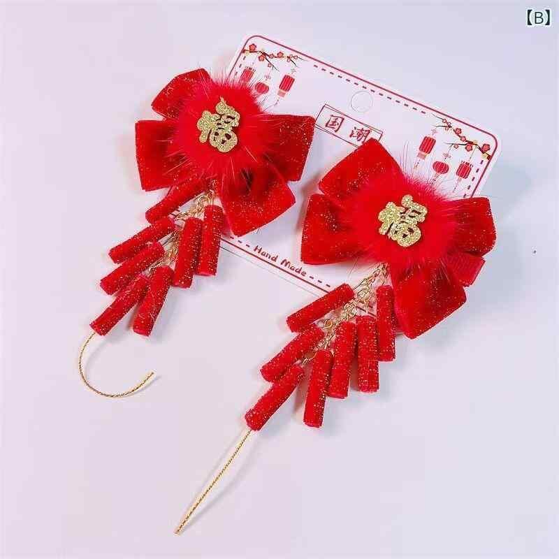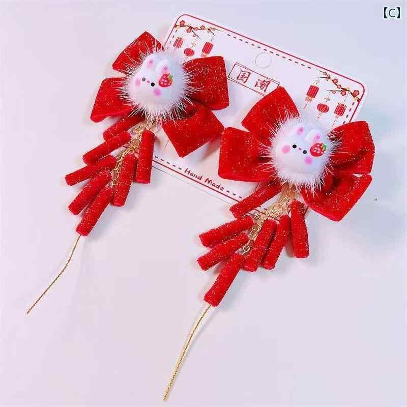 髪飾り キッズ 女の子 ベビー ジュニア 赤色 爆竹 リボン ヘアクリップ 対クリップ 古風 レトロ 中国伝統衣装 漢服 和装 お正月 七五三 発表会 初節句 華やか かわいい 布製 縁起物