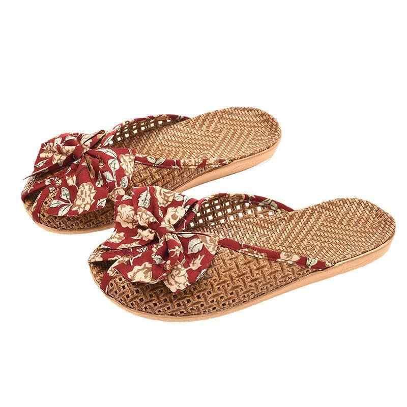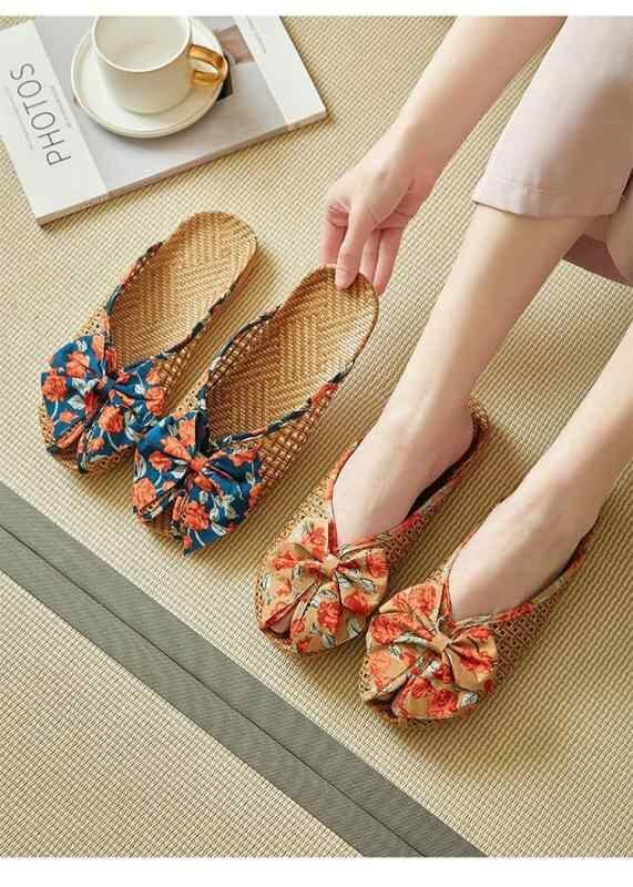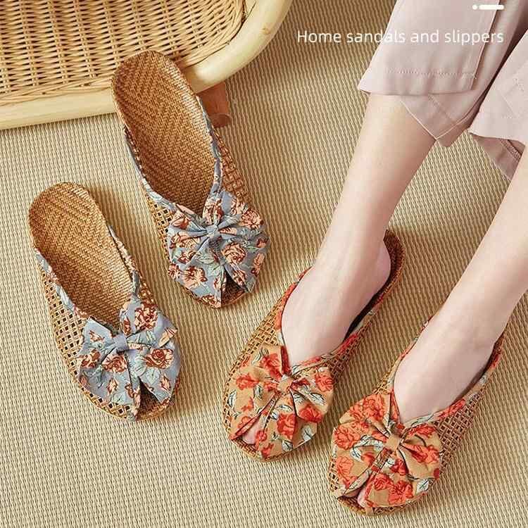 スリッパ 男女兼用 夏用 藤草編み 竹編み リネン 麻 つま先カバー リボン 通気性 吸汗 消臭 涼しい ルームシューズ 室内履き おうち時間 カジュアル EVAソール