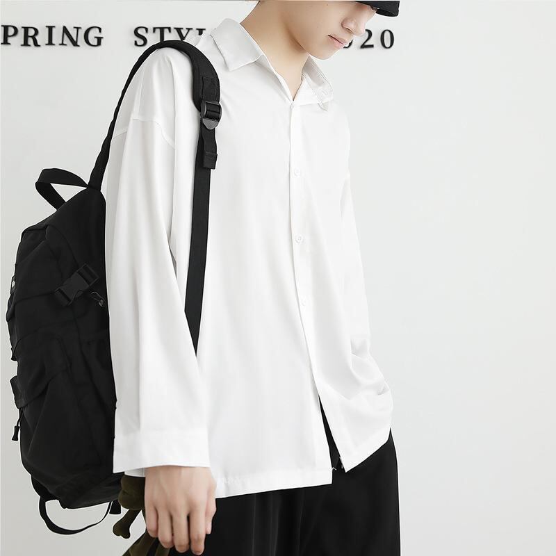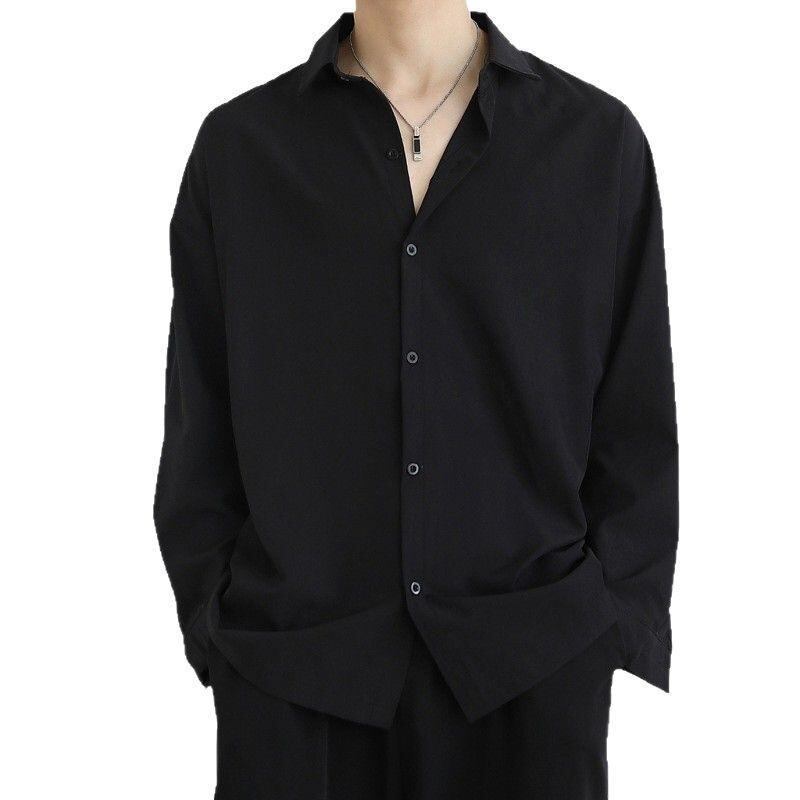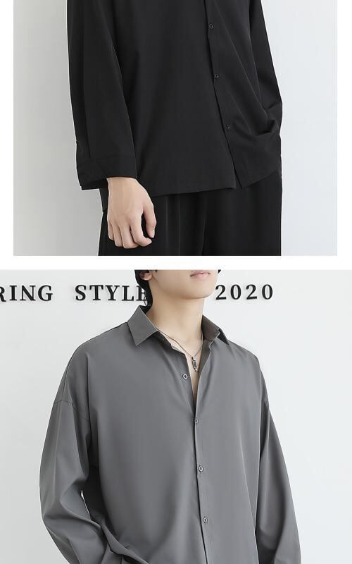 シャツ メンズ ゆったり ルーズフィット ビッグシルエット 接触冷感 ドレープ感 ポリエステル 長袖 無地 襟付き 防シワ加工 大人カジュアル クール トップス