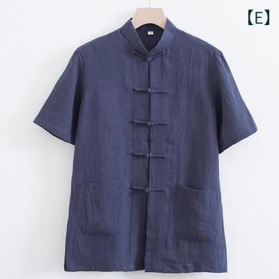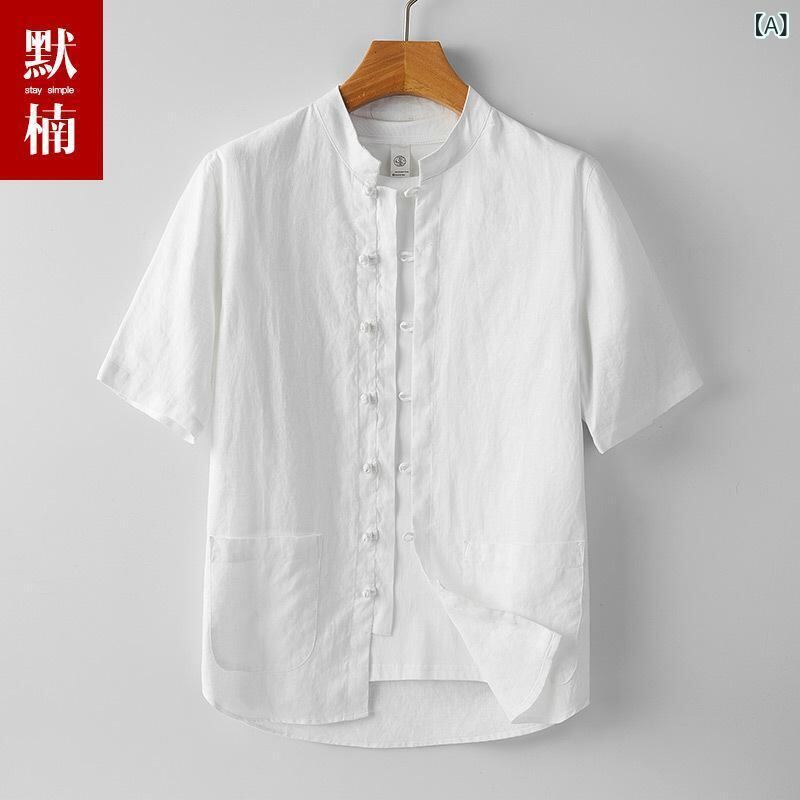 シャツ メンズ 中華風 麻混紡 夏用 半袖 スタンドカラー チャイナボタン 薄手 軽量 ゆったり リラックスフィット レトロ カジュアル 防シワ 吸湿速乾