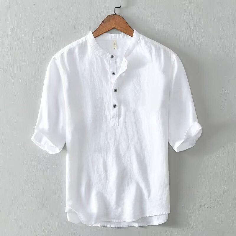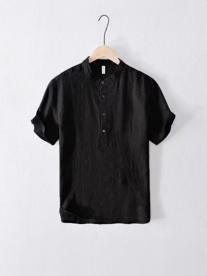 シャツ メンズ 綿麻 リネン 半袖 ヘンリーネック ハーフボタン ゆったり 高級感 通気性 吸湿速乾 イージーケア シワになりにくい カジュアル デイリー 普段使い 無地