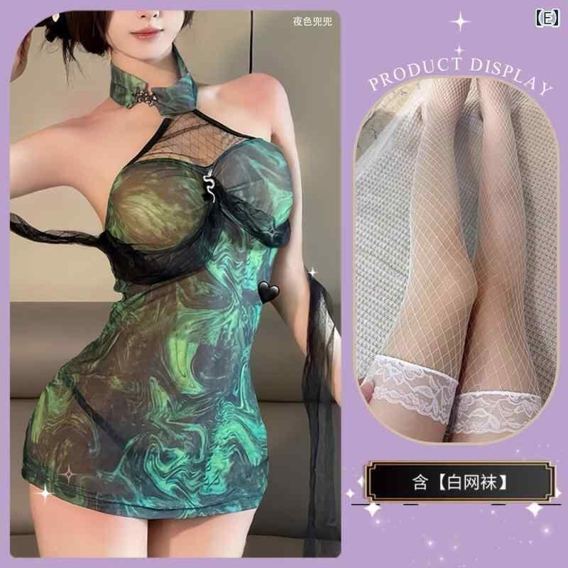 チャイナドレス レディース セクシー ホルターネック 純欲 レース スリップ ランジェリー セット 誘惑 ナイトウェア コスプレ 衣装 かわいい 少女風 タイトシルエット ポリエステル ルームウェア