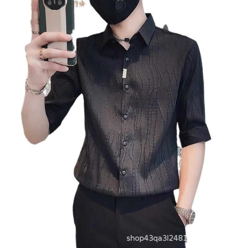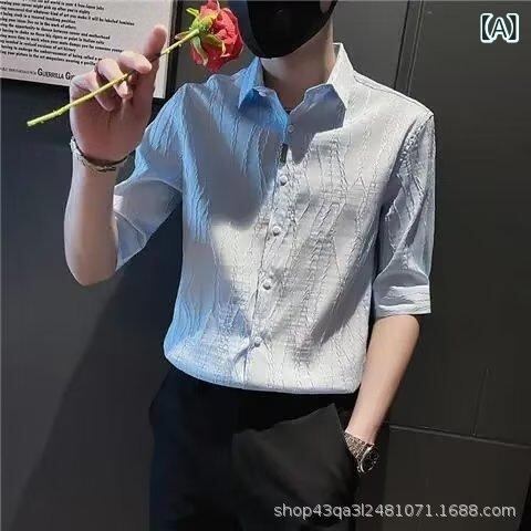 シャツ メンズ 春秋 七分袖 スリムフィット 無地 原宿系 ファッション トレンド 大人カジュアル スタイリッシュ 襟付き ポリエステル混紡 耐摩耗性 デイリーユース