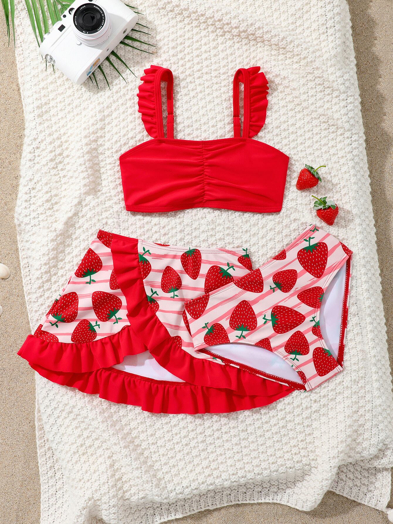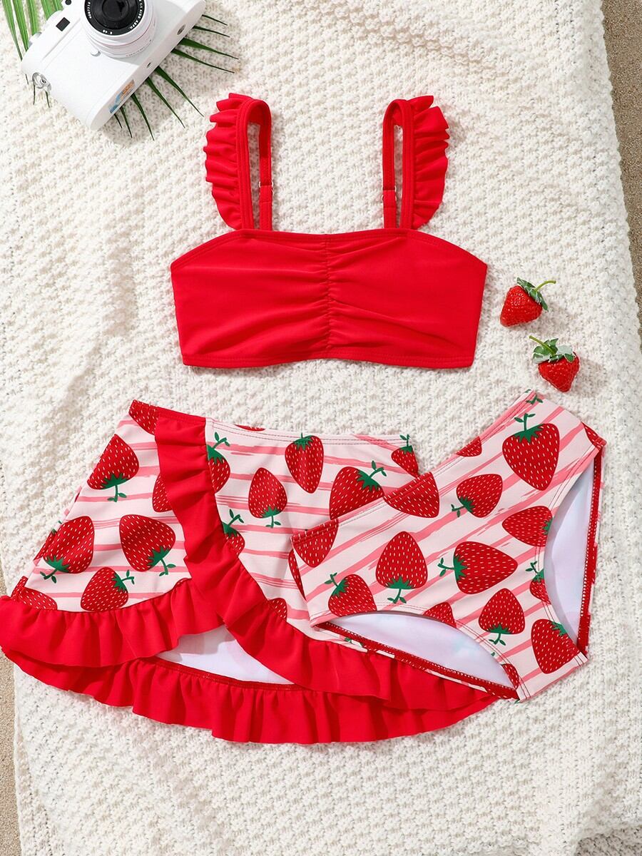 水着 女の子 ガールズ キッズ かわいい いちご柄 スイムウェア 多色セット ポリエステル素材 リゾート プール ビーチ 旅行 伸縮性 赤 レッド