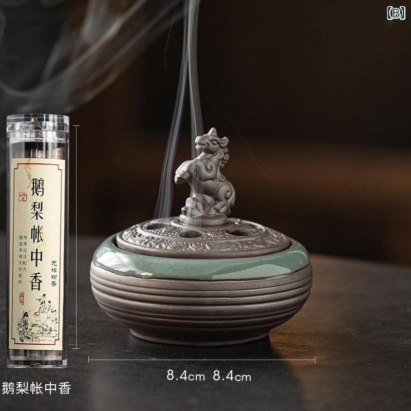 ・種類: ミニ香炉、ミニ香炉+鵝梨帳中香(小片)、ミニ香炉+老山白檀香(小片)、ミニ香炉+芽庄沈香(小片)、ミニ香炉+龍涎香(小片)、ミニ香炉+ヨモギ香(小片)、鵝梨帳中香(小片)、老山白檀香(小片)、芽庄沈香(小片)、龍涎香(小片)、ヨモギ香(小片)
