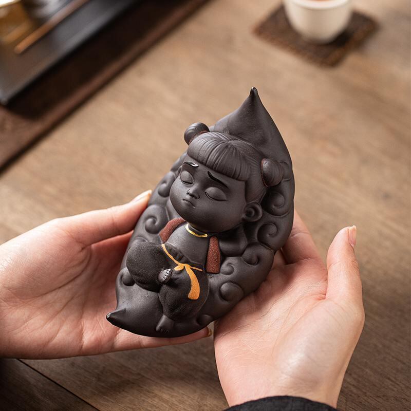茶寵 哪吒 紫砂 置物 育てる茶寵 高級感 個性的 新中華風 モダンチャイニーズ 茶道具 茶盤飾り 卓上インテリア 縁起物 開運 フィギュア 鑑賞