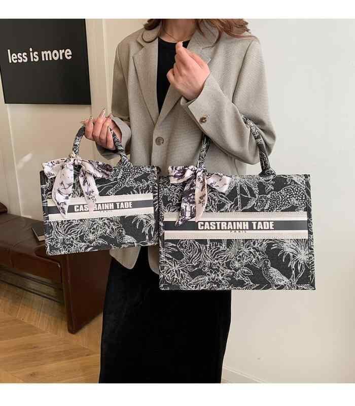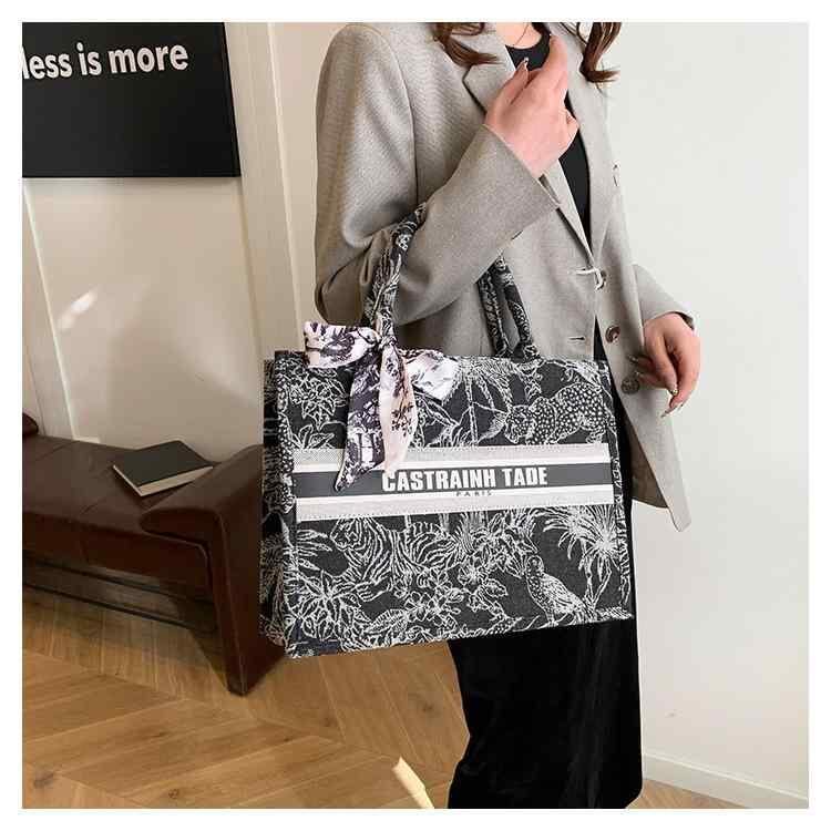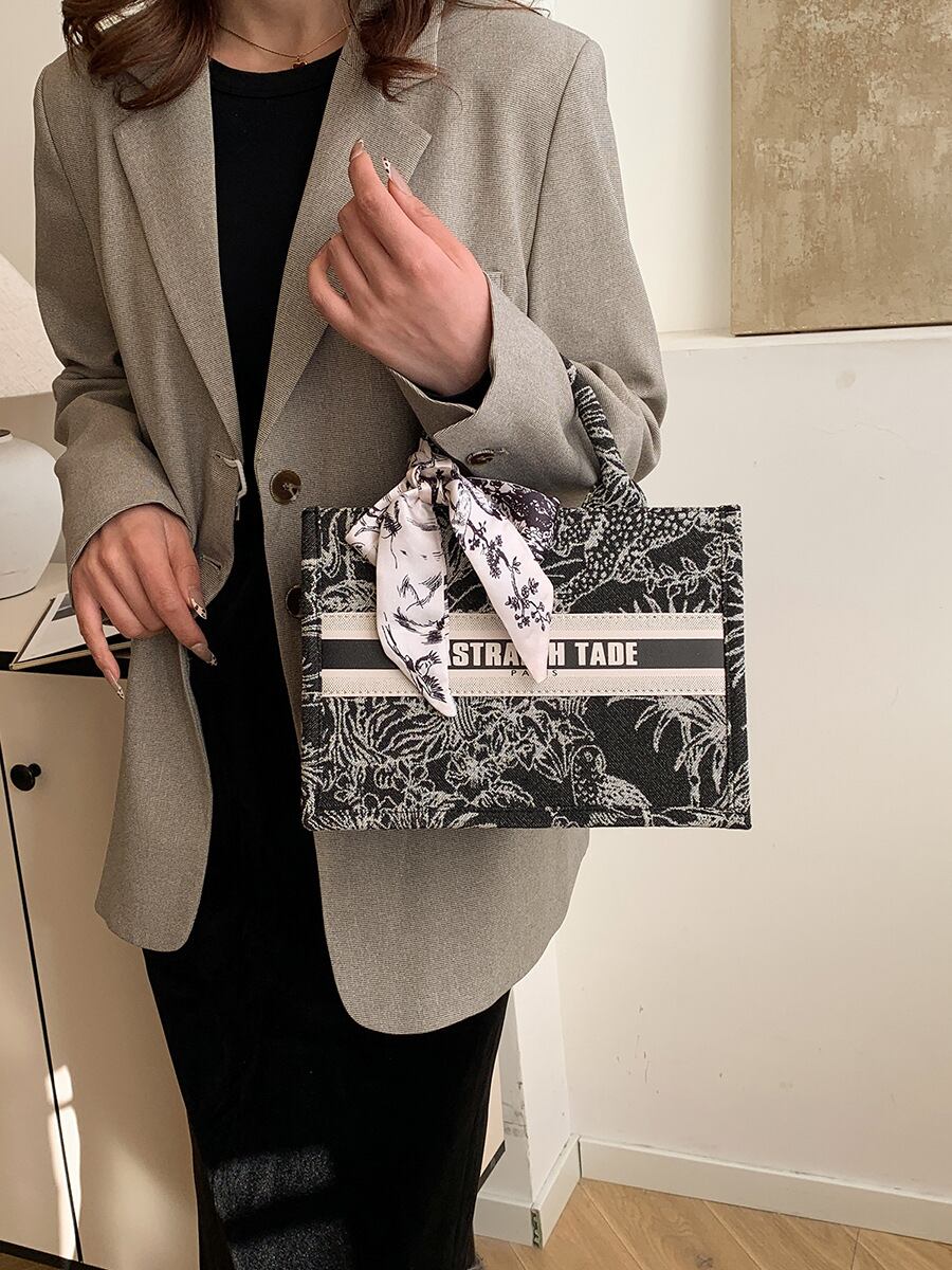 トートバッグ レディース 大容量 キャンバス ブラック 通勤 通学 手提げ 肩掛け ファスナー開閉 横型 スクエア ビジネス カジュアル レタープリント リボン ステッチ