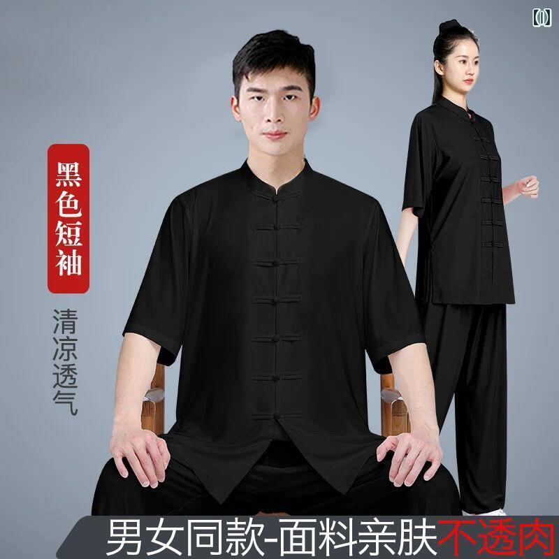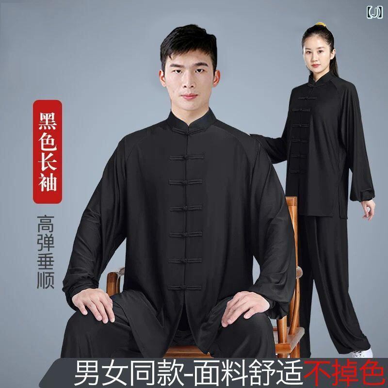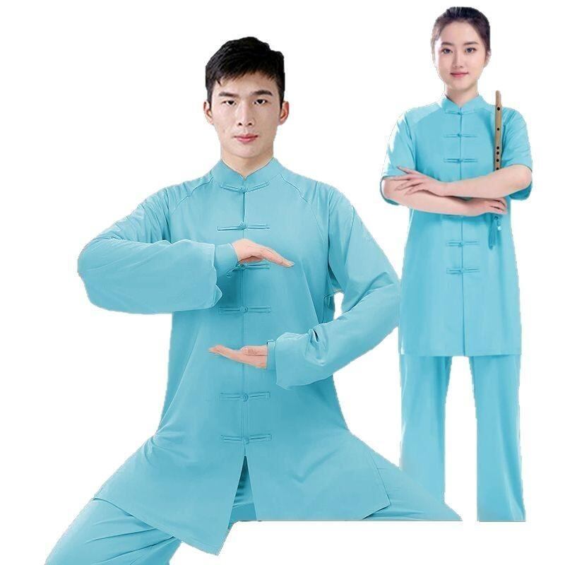 太極服 子供 男性用 武術着 太極拳ウェア 八段錦 演舞 稽古着 練習着 薄手 軽量 快適 吸湿速乾 亜麻混 スパンデックス ストレッチ素材 セットアップ 白 黒 水色