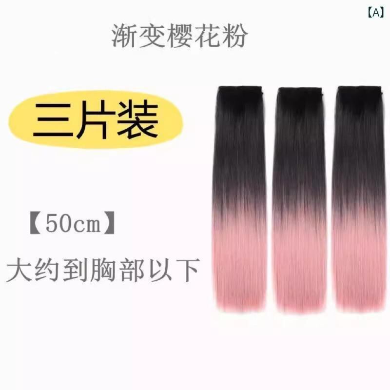 ヘアピース レディース ロングストレート グラデーションカラー ハイライト 3枚セット 部分ウィッグ ボリュームアップ ふんわり 耐熱ファイバー 簡単装着