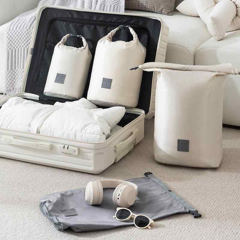 衣類収納袋 トラベルポーチ 携帯用 大容量 圧縮袋 防塵 旅行 出張 スーツケース 荷物整理 仕分け袋 ポリエステル製 多機能 多用途 小物入れ 雑貨収納 部屋整理 シンプル モダン ベージュ ブラック グレー
