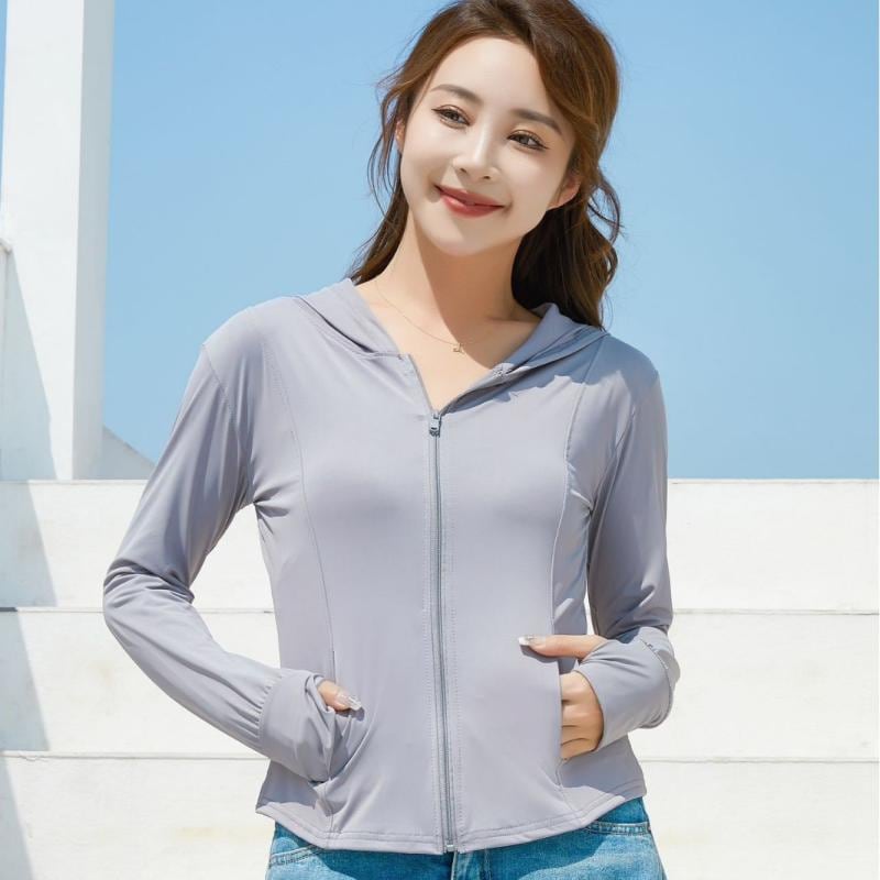 パーカー レディース ポリエステル スリムフィット フード付き 長袖 UVカット 接触冷感 吸湿速乾 軽量 薄手 通気性 耐久性 日焼け対策 アウター サイクリング アウトドア スポーツ 普段使い 夏