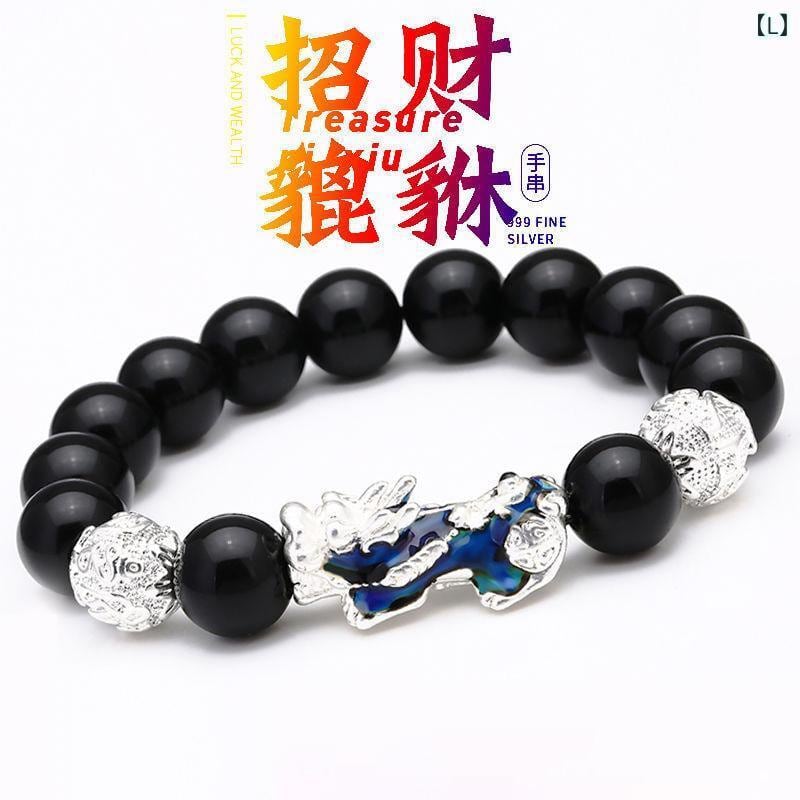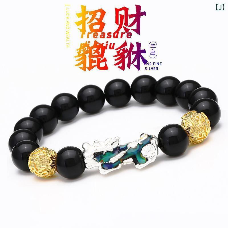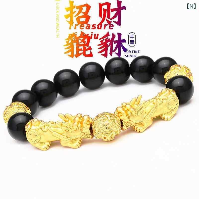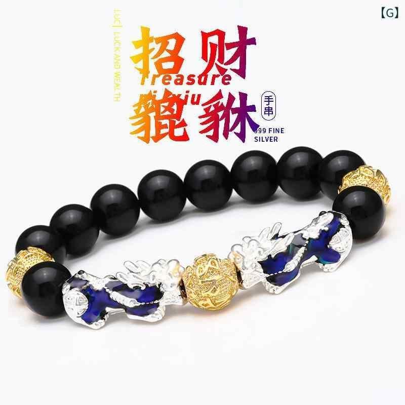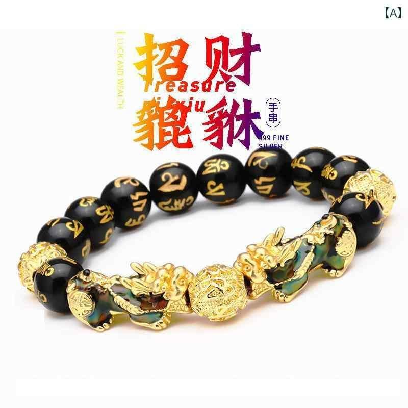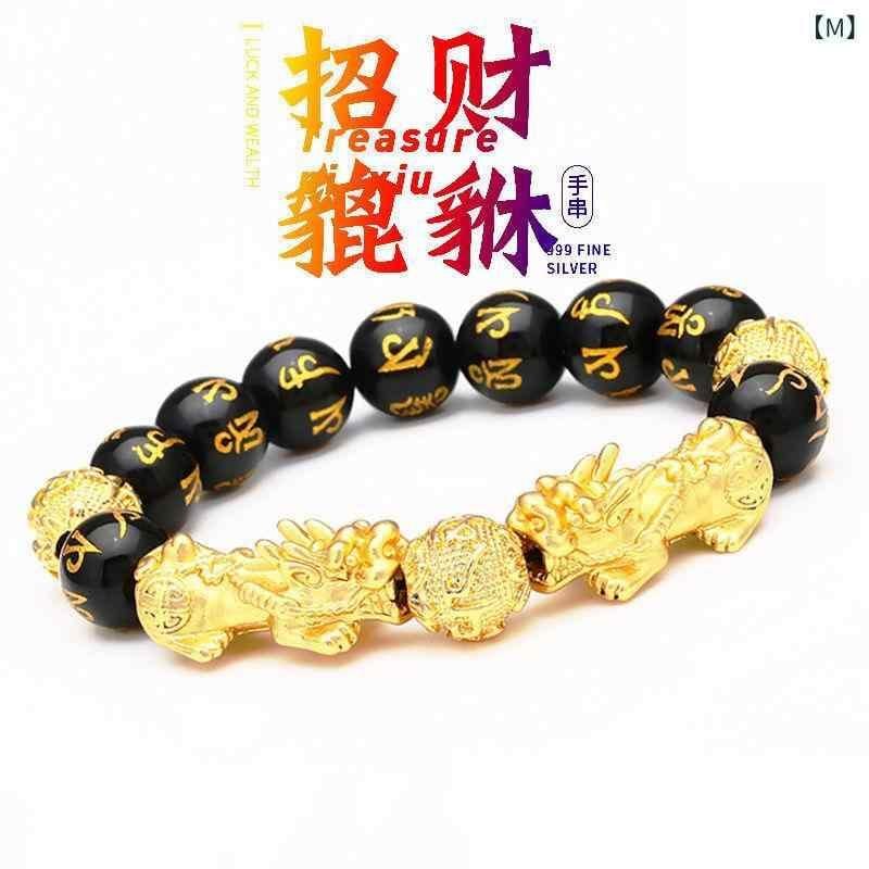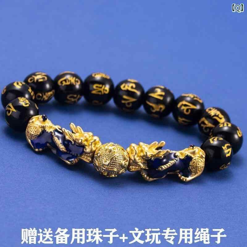 ブレスレット メンズ 貔貅 黒曜石 六字真言 仏珠 数珠 パワーストーン 天然石 感温変色 砂金風 開運 金運 招財 幸運 魔除け お守り 高級感 クール おしゃれ レトロ ヴィンテージ