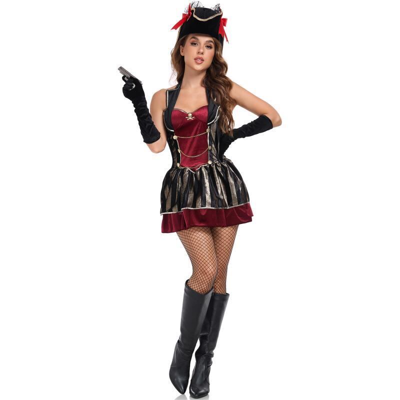 コスプレ レディース 海賊 衣装 ゴシック パイレーツ カリビアン風 ハロウィン イベント パーティー 混紡素材 伸縮性 ストレッチ