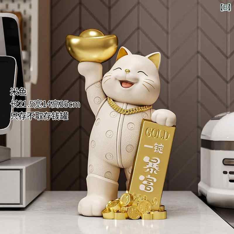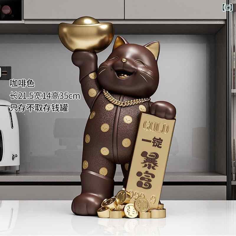 貯金箱 招き猫 置物 インテリア雑貨 開業祝い 開店祝い ギフト 縁起物 ラッキーアイテム かわいい おしゃれ ユニークデザイン 手描き 樹脂製 モダン シンプル レジカウンター 受付 玄関 オフィスデスク 貯蓄型 ピンク ベージュ ブラウン