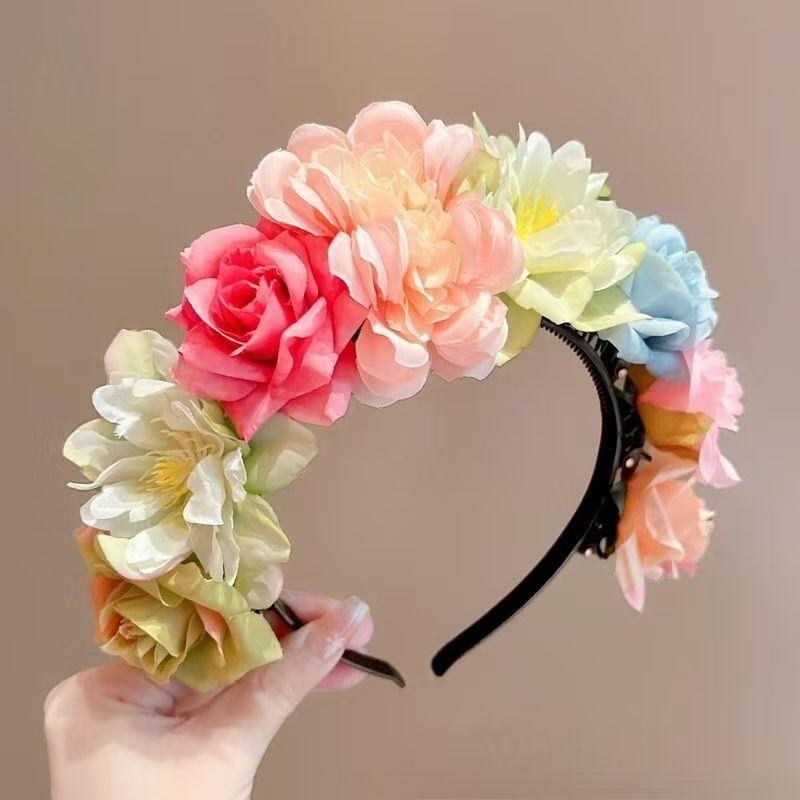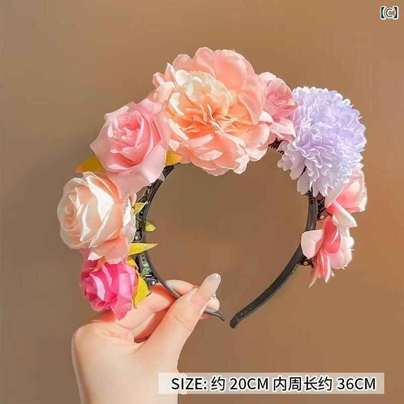 髪飾り 女の子 キッズ 中華風 漢服 花かんざし カチューシャ フラワーヘアバンド 民族風 花飾り 布製 かわいい
