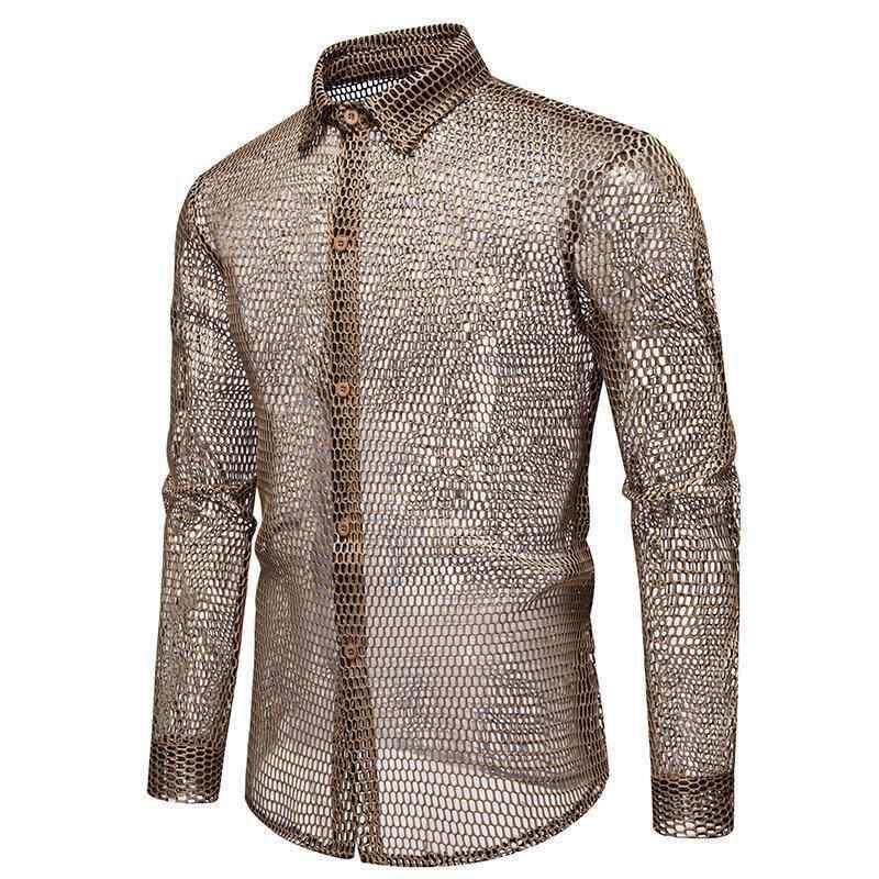 シャツ メンズ 長袖 シースルー ドット柄 おしゃれ セクシー カジュアル ナイトシーン パーティー スリムフィット ポリエステル混紡 ウォッシャブル