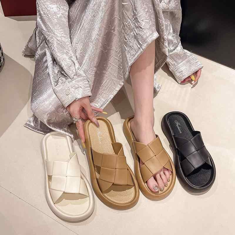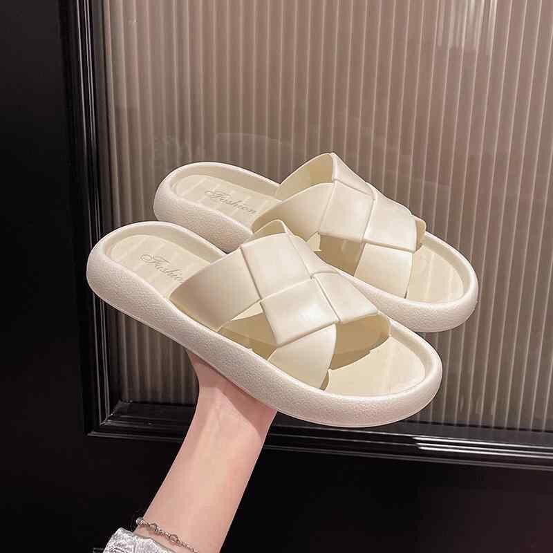 サンダル レディース チェック柄 編み込み 厚底 PVC素材 室内履き 外履き 浴室用 ビーチ プール 普段使い デイリーカジュアル 滑り止め 耐摩耗性 柔らかい履き心地 ルームシューズ