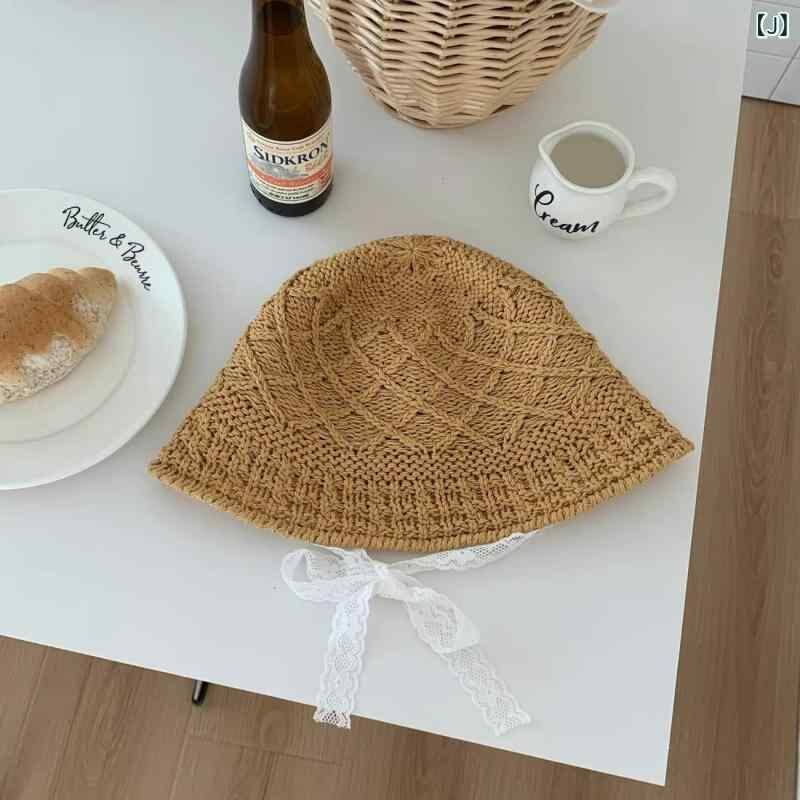 バケットハット レディース 女性用 かわいい リボン 透かし編み 通気性 涼しい 夏用 UVカット 紫外線対策 日よけ帽 細見え効果 軽量 ポリエステル カジュアル フェミニン