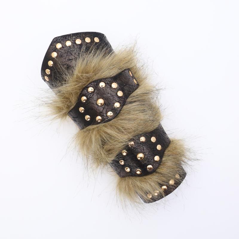 アームガード メンズ 中世 ゴシック パンク レザー ボア 切り替えデザイン 西洋ファンタジー コスプレ 舞台衣装 イベント 仮装小物 ブラック