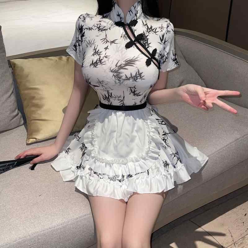 ・セット内容: 旗袍+エプロン+蝶ネクタイ、旗袍+黒網タイツ、旗袍+黒ストッキング、旗袍+黒オープンクロッチストッキング