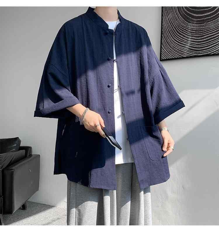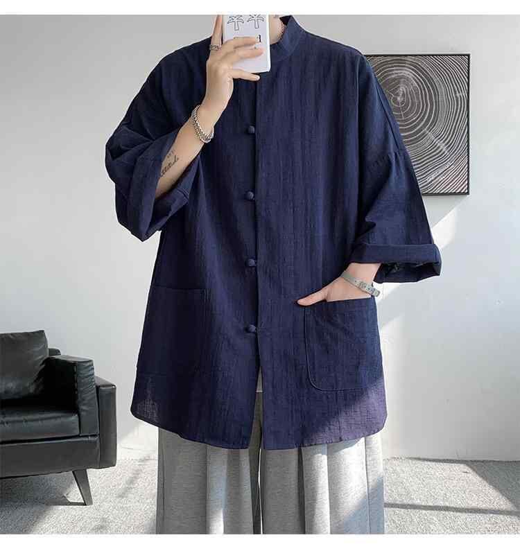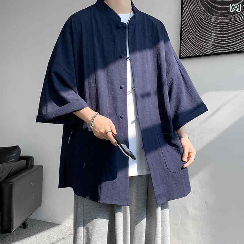半袖シャツ 男性用 ネオチャイニーズスタイル 麻 夏 涼しい 薄手 ゆったり 快適 民国風 漢服 長衫 アウター 中山服 唐装 中国風 中国風 馬褂
